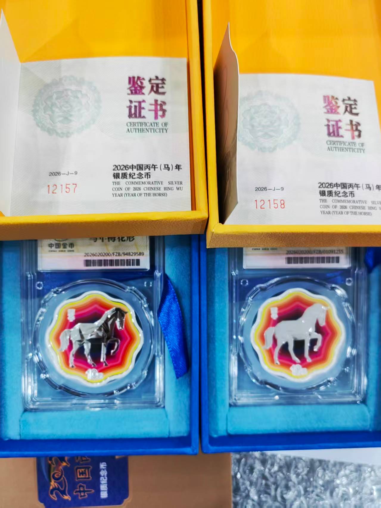 出刚开包金总封装原盒证26梅花银马,靓号12157.12158。一起售3680。电联确认,议价勿扰,包品包邮!