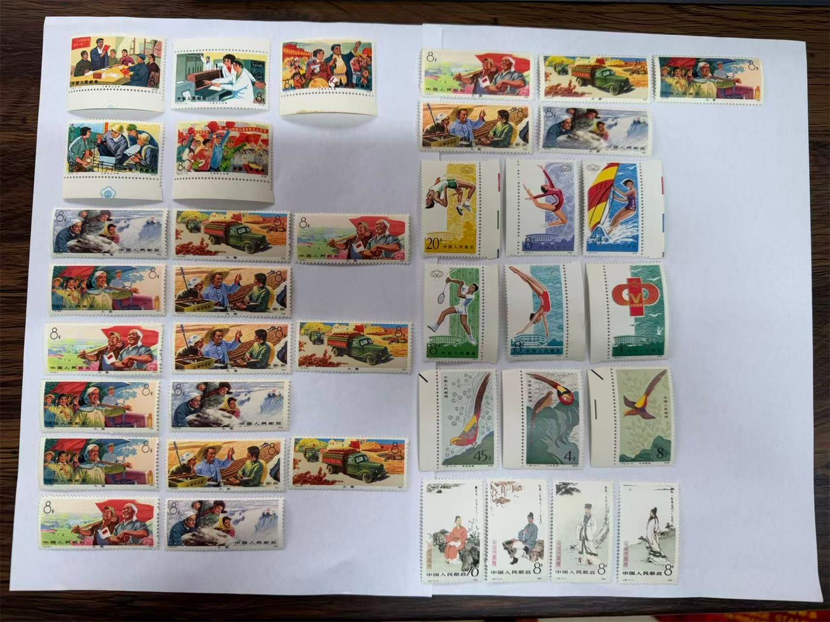 → 低售微黄T18工农兵上大学260元/套,T5农业学大寨4套90元/套,83三运会25元/套,文学家20元/套,气象大部分全品个别微黄,锦鸡25元/套