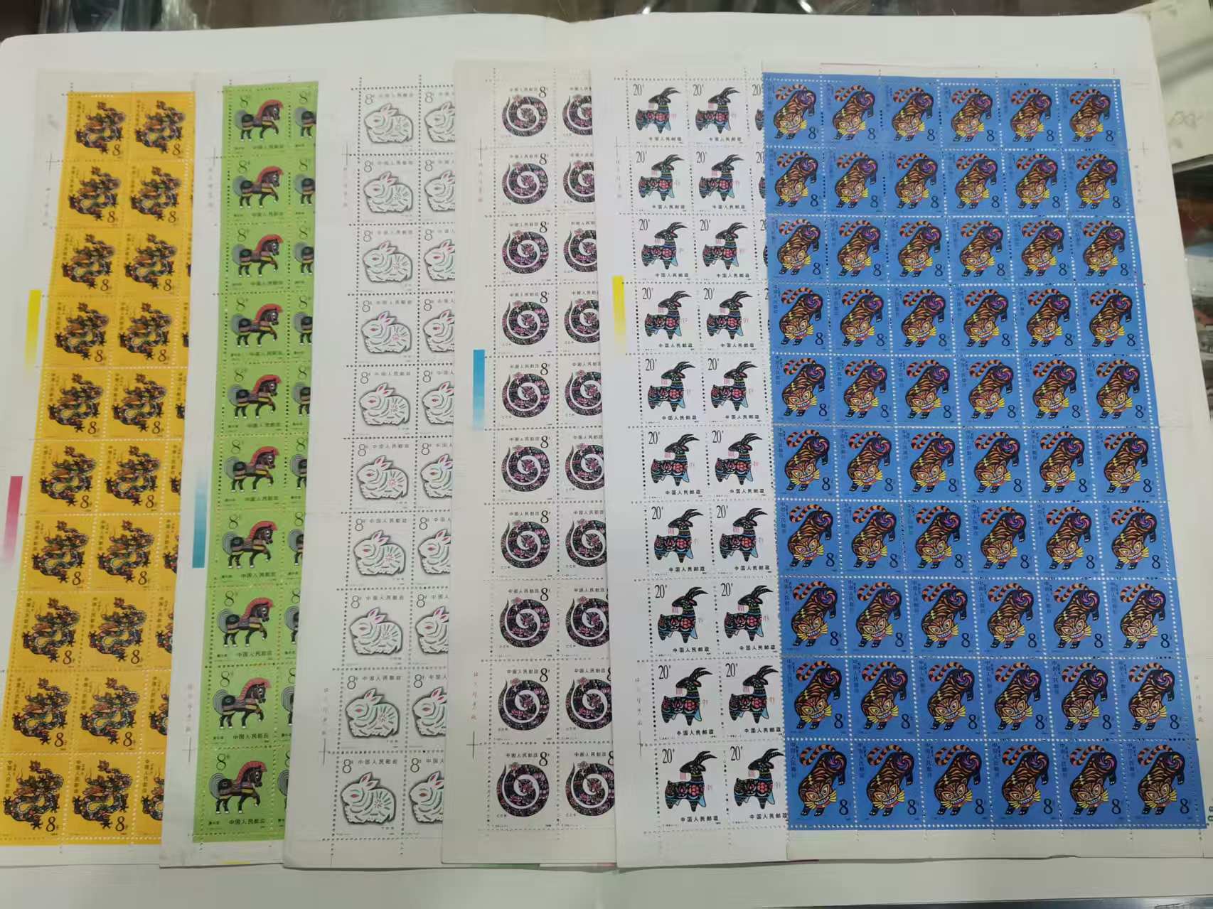 一轮龙马兔蛇羊折版,虎大块60连,龙羊背后各一枚瑕疵,
