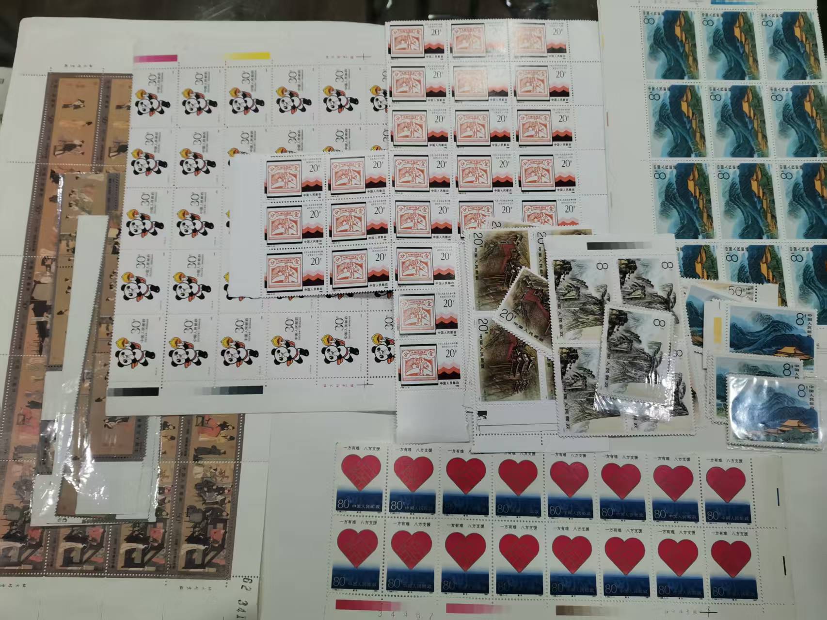夜宴图齿孔折14套X5元;衡山华山恒山28套X3元