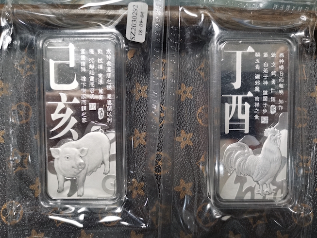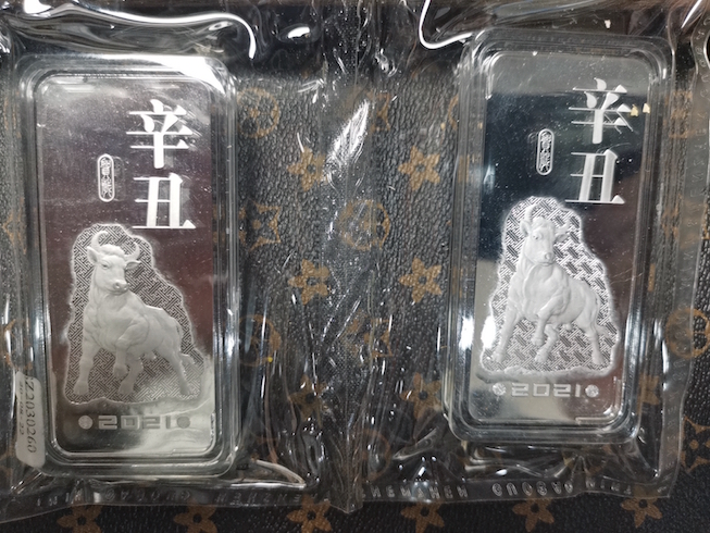 → 售金总生肖银条,鼠牛鸡猪200克银条