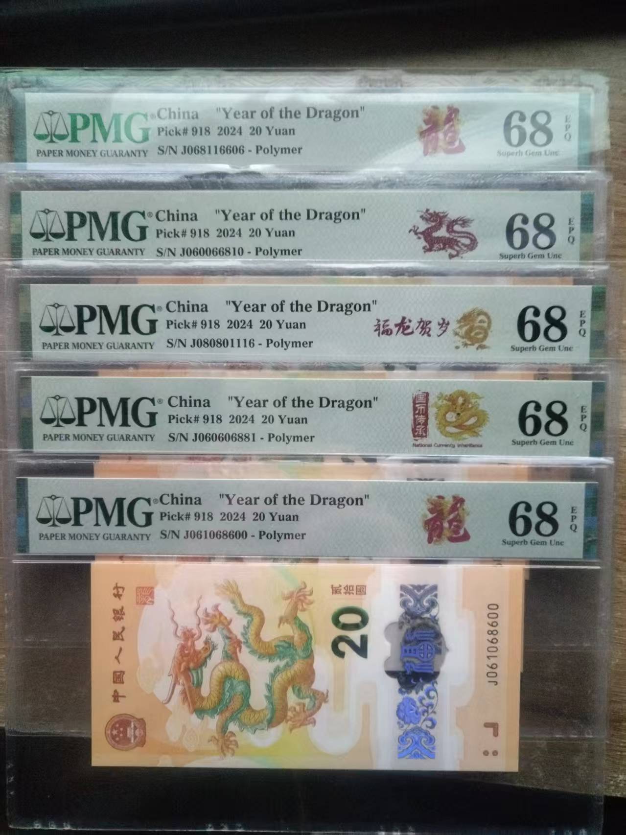龙钞倒置PMG68分0168一路发 都是918老标 5枚一单走 单价2520元