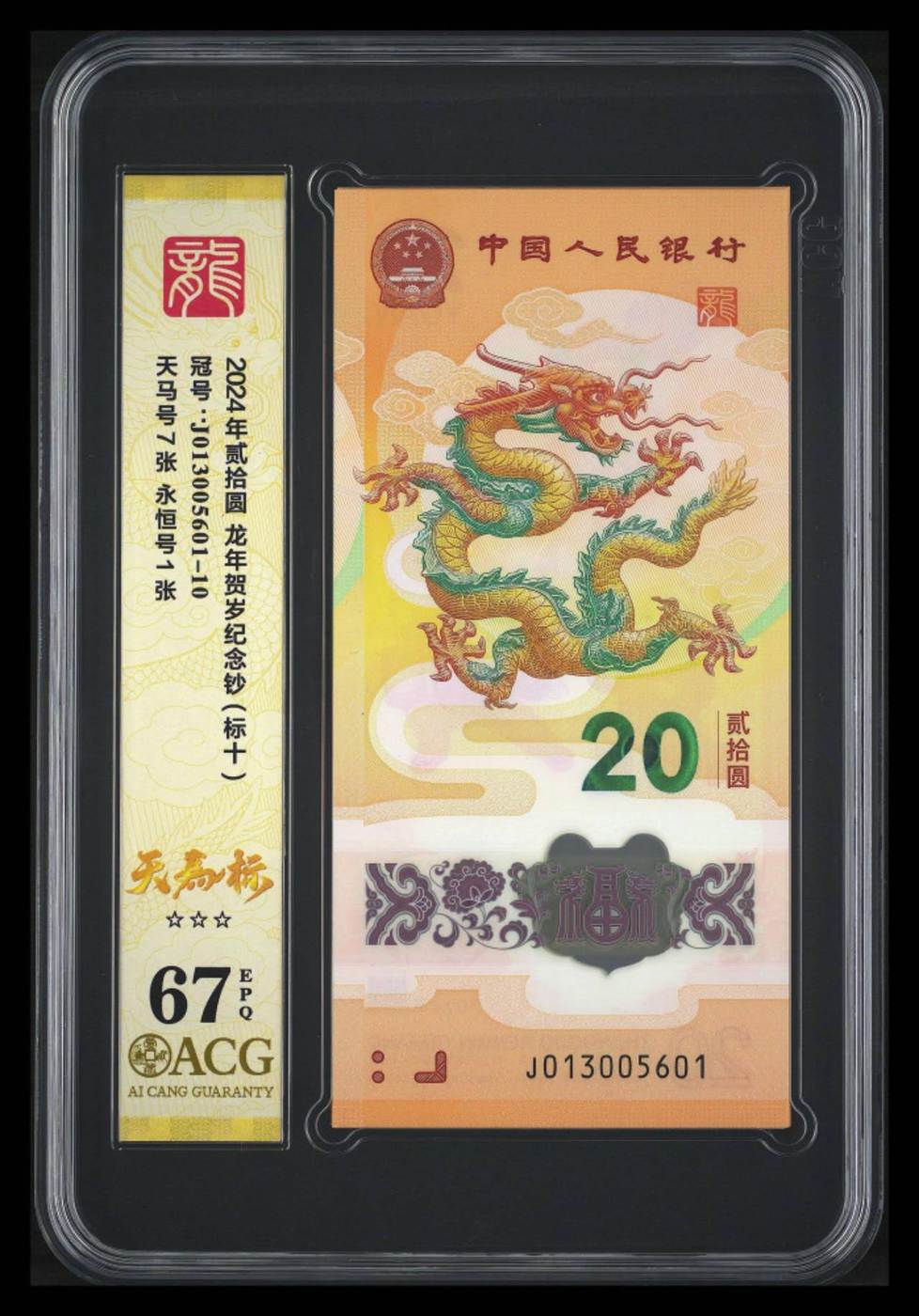 出龙钞无247天马标十尾01组,爱藏67,价格1850