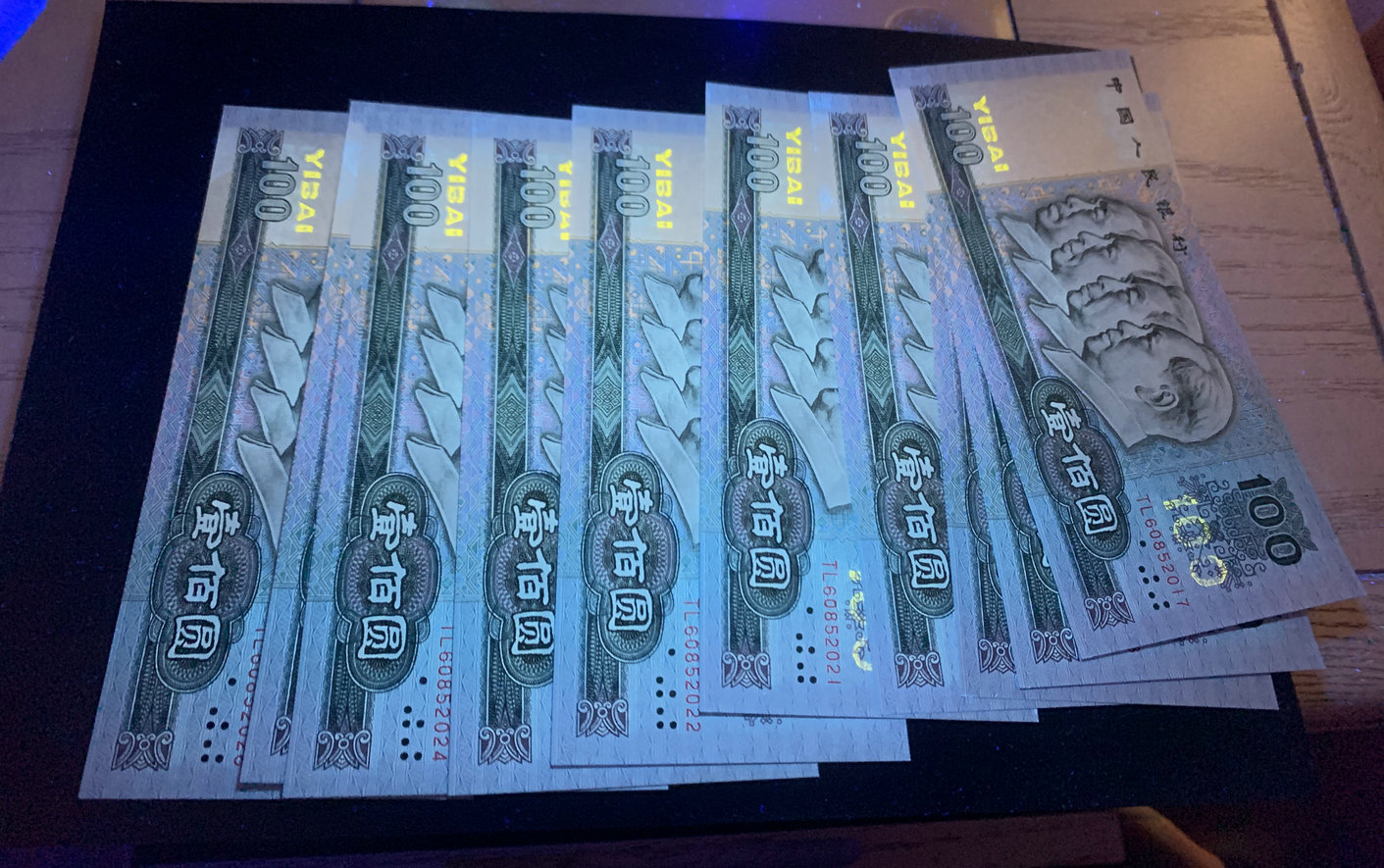 全新原票无347十连如图,稀少荧光漏印,一侧灯下有手印如图,价1280元包邮