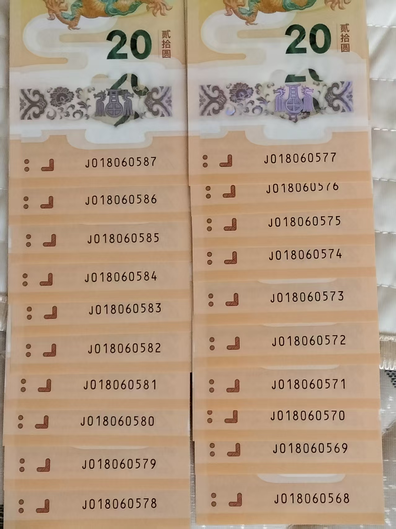 小龙钞 J018060568-587 二十连 售7800元;