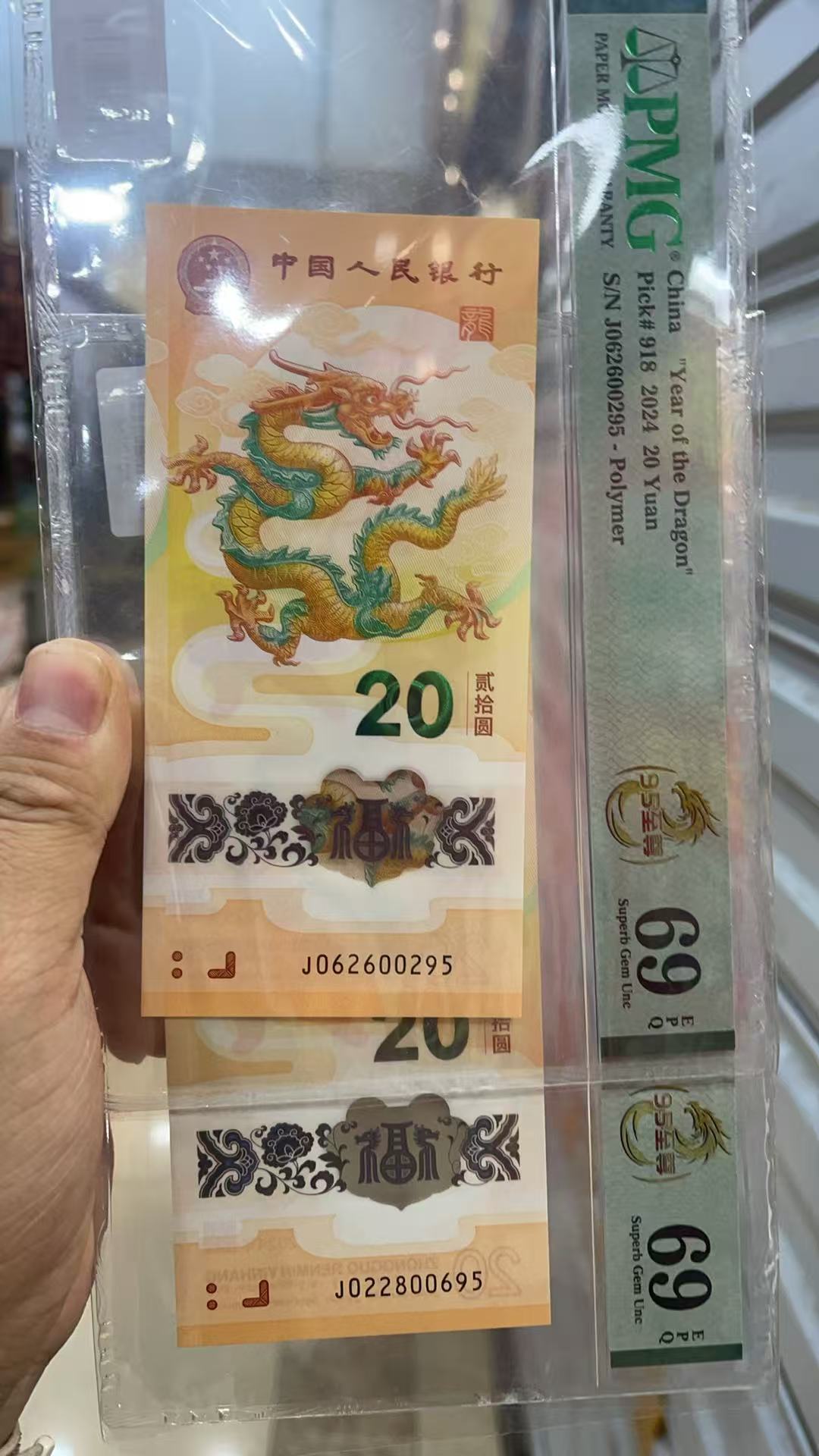 → ===出两张龙钞无347尾95PMG69分====