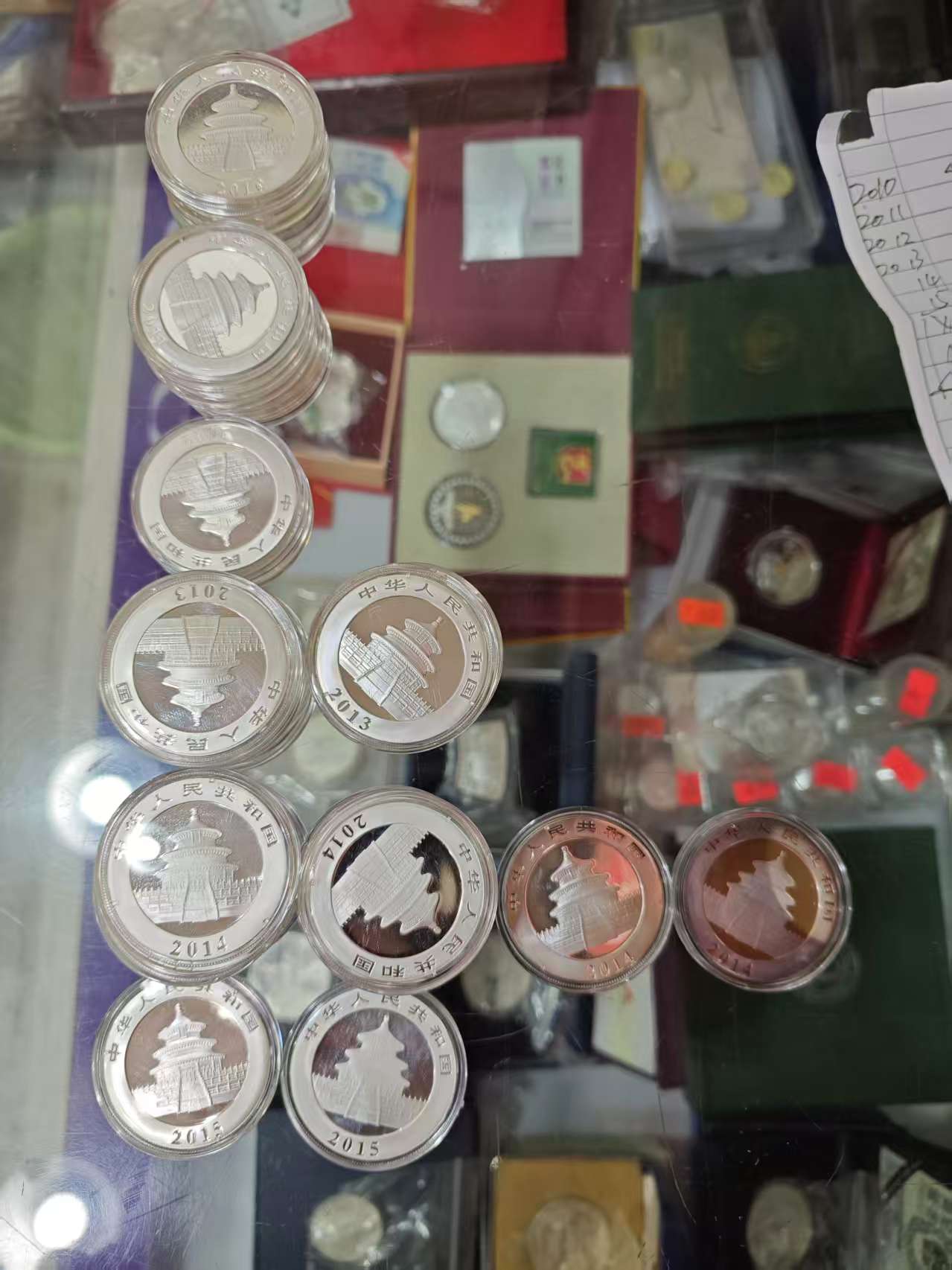 如图,2010-2015之间发行的32枚熊猫银币,540元每枚,没有说明书,其中2枚氧化,一起走包顺丰,款打签名档银行卡