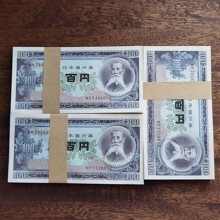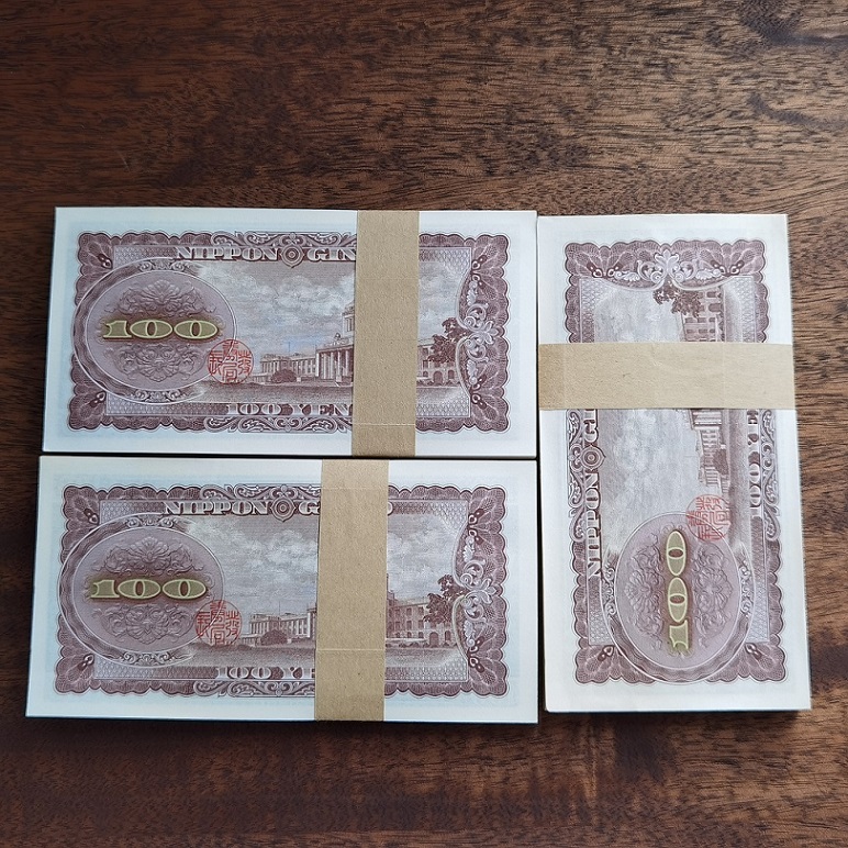 1953年版日本100門纸币同捆三刀。