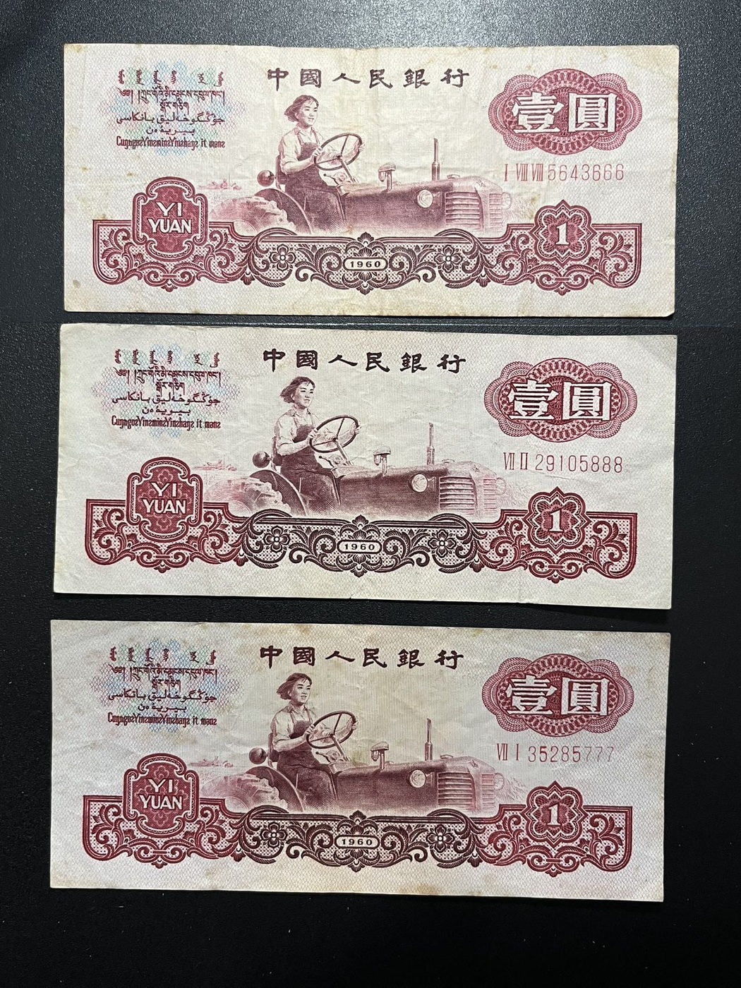 三版拖拉机三张,豹子号666、777、888、原票好品如图,通走惠售350元包邮,联系确认