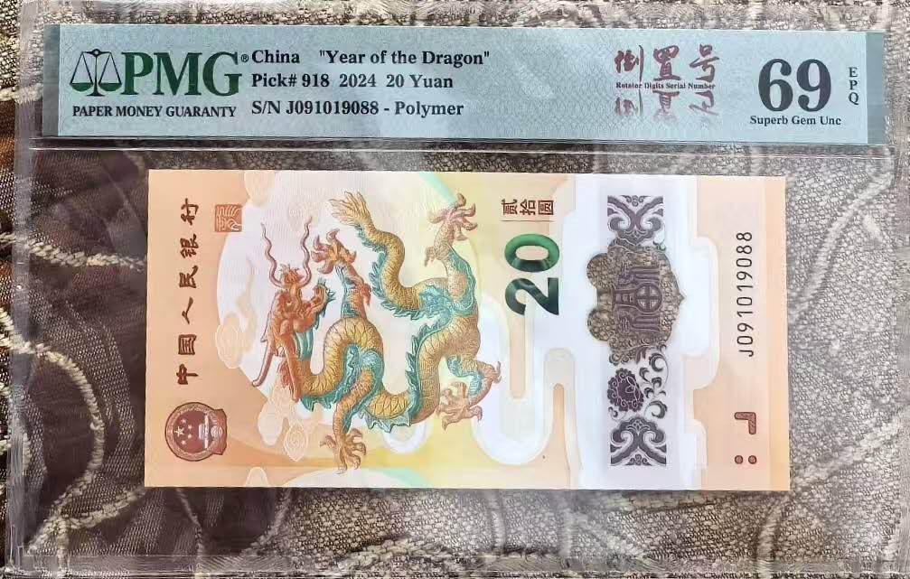 出小龙钞PMG69分龙四0189组合尾88倒置号尾88,老标918编号倒罝号双尾88pmg69分