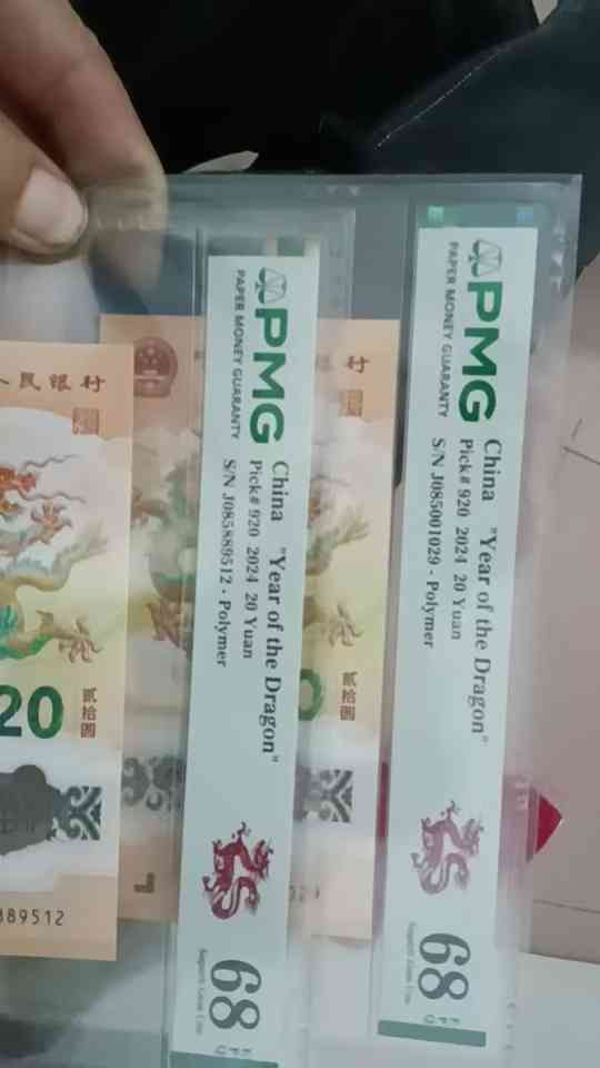 2800收小龙钞朦胧号首期标pmg68分,带英文字母的,中文也行,要918的,要2张