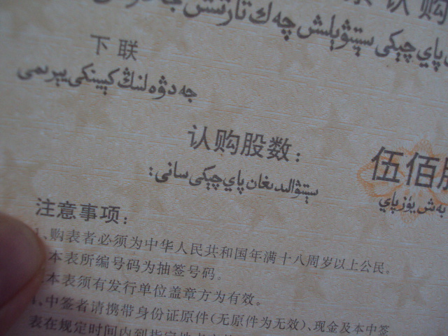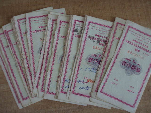 新疆股票认购证 带防伪水印 维汉两种文字 电联13239921011