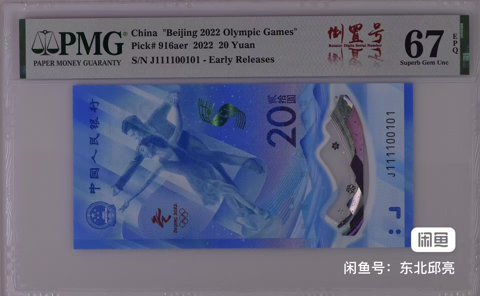 冬奥钞J111100101 PMG67 卖4600元,24小时自动撤贴