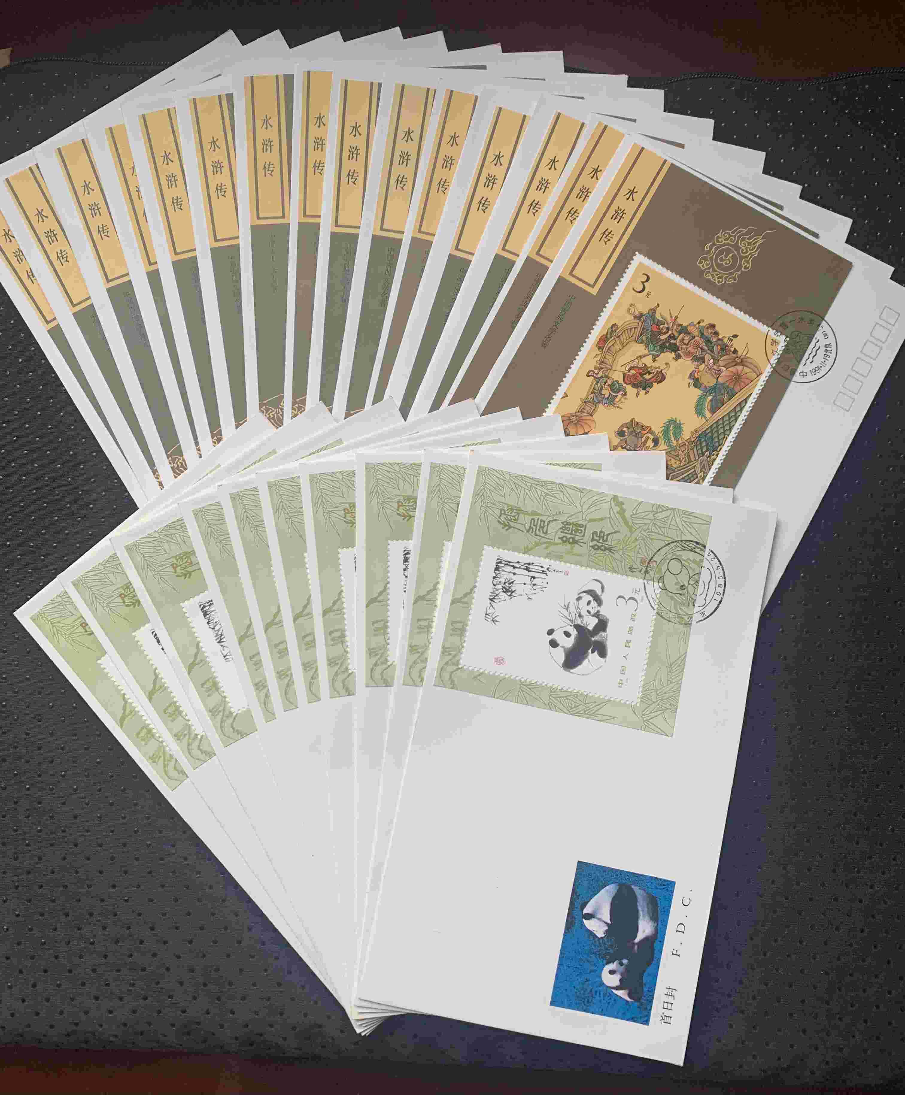 熊猫小型张首日封、水浒传3小型张首日封合计25枚 220.00元