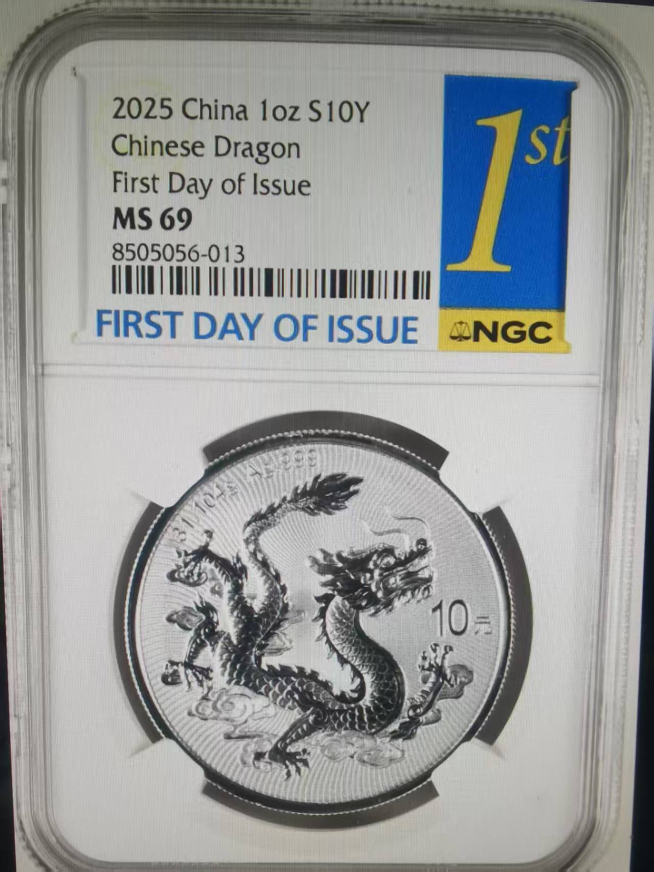出2025中国龙银币NGC评级69分首日金兰标10枚