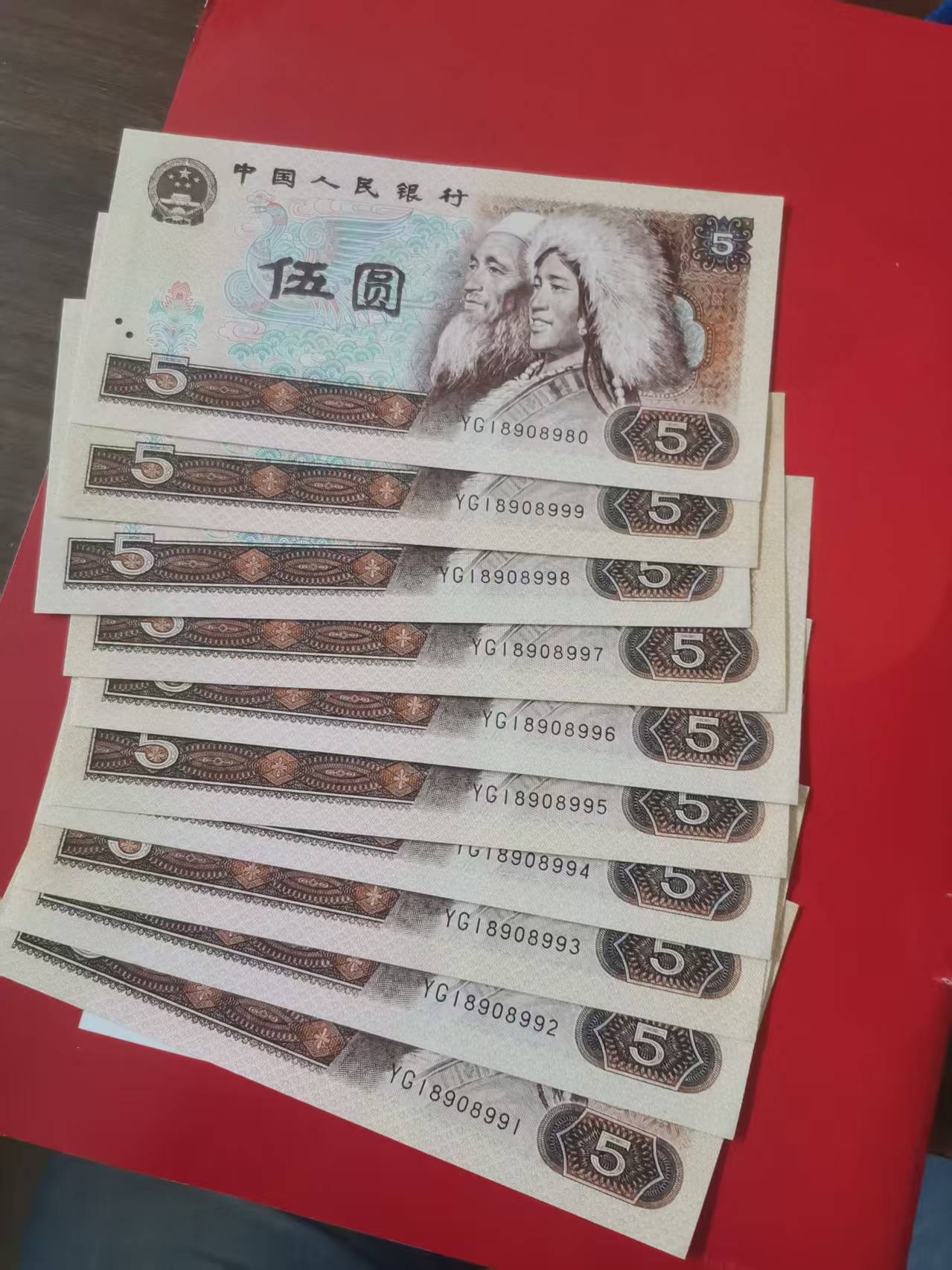 四版1980年5元倒置号标十豹子号20张