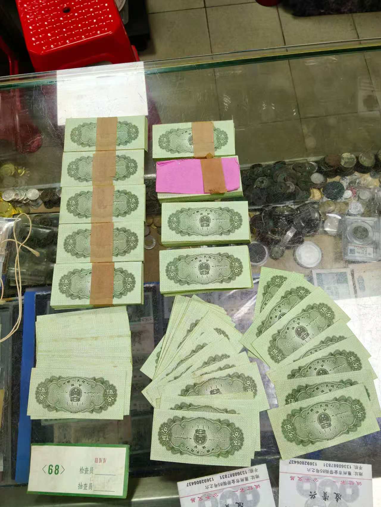 出原票5分纸币一捆有黄斑如图
