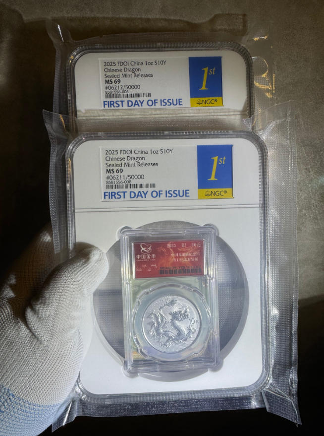 → 出金总发行封装龙银币ngc金兰首日标无3457朦胧号两枚