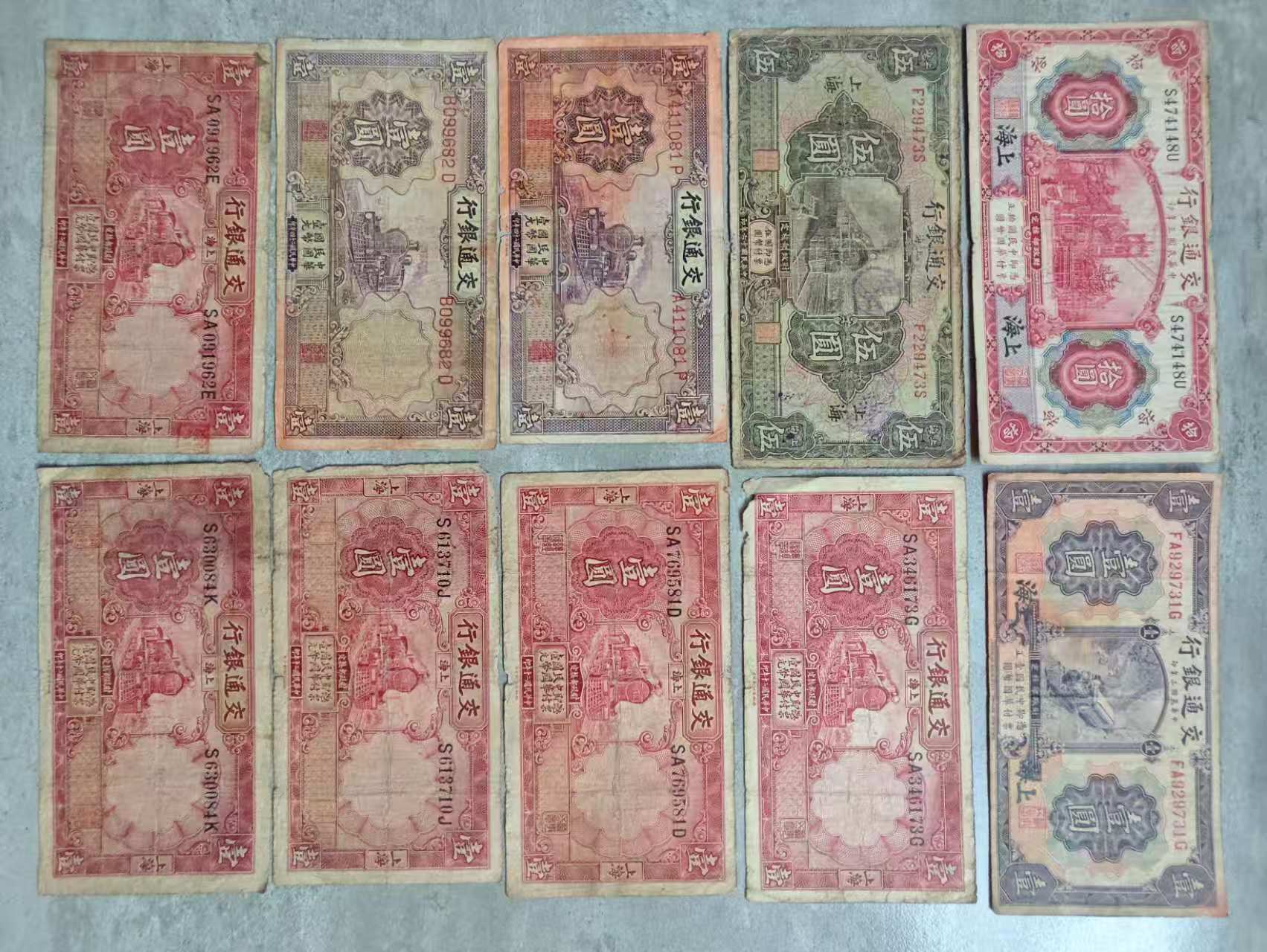 → 售10张交通银行和10张中国农民银行