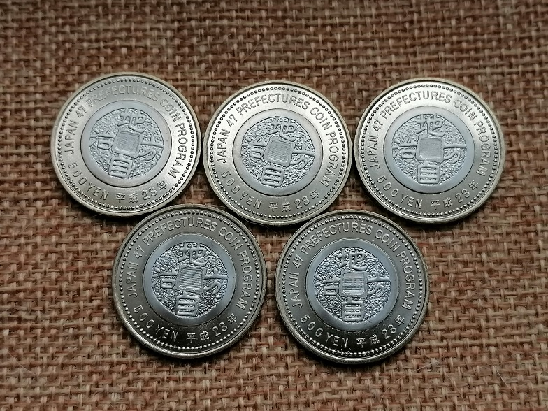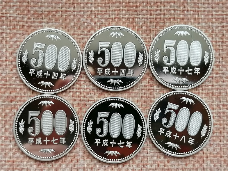 500日元精制币6枚;500日元纪念币5枚;共11枚*42元=462元包普快.