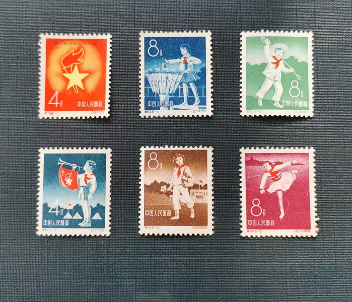 纪64少先队,4分有个纸质点(邮政记载该套票无胶)350元