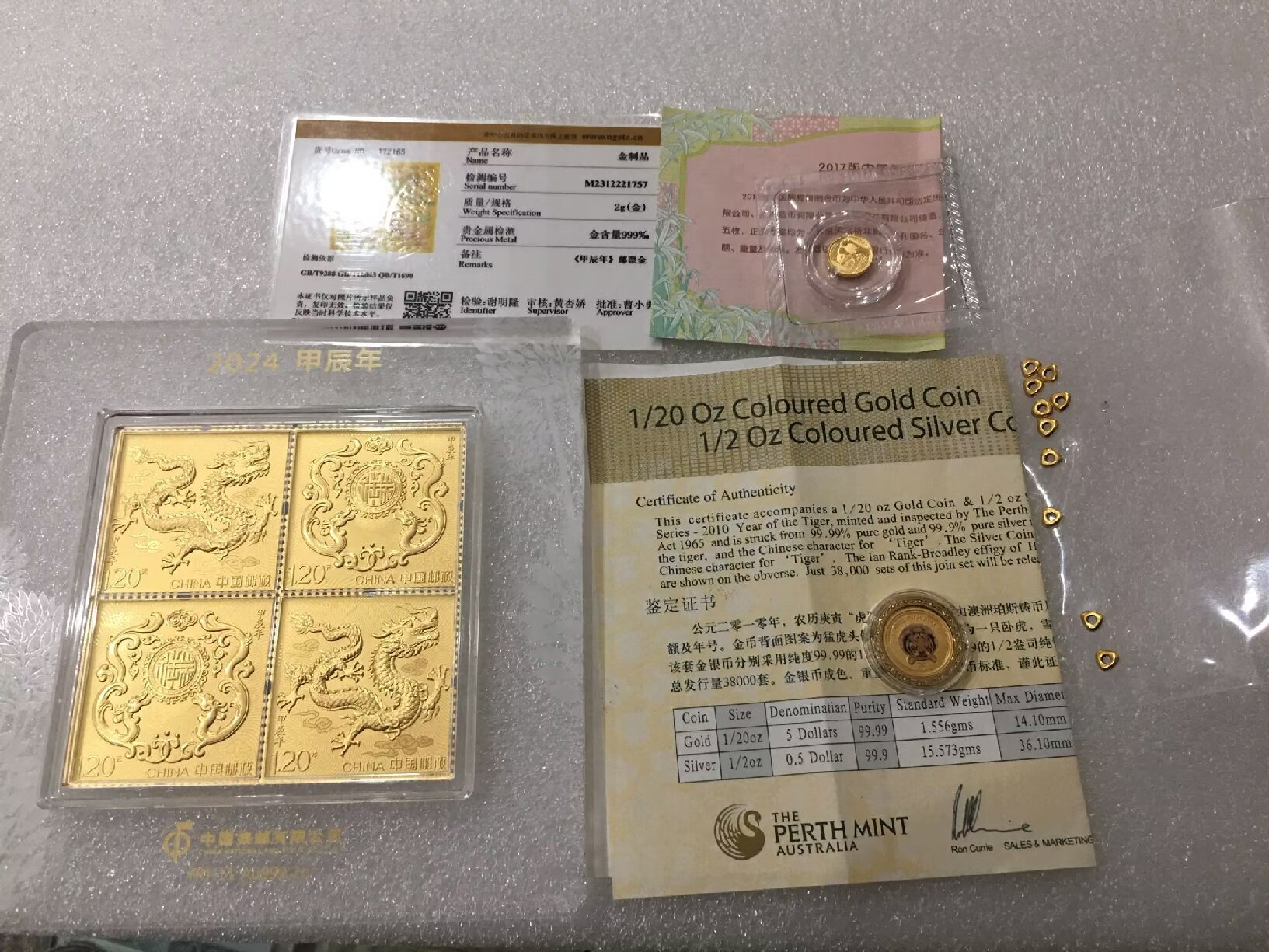 17年金猫1克,邮票2克,金币1.556,小桃心0.48(5.036克,5080元)包邮。