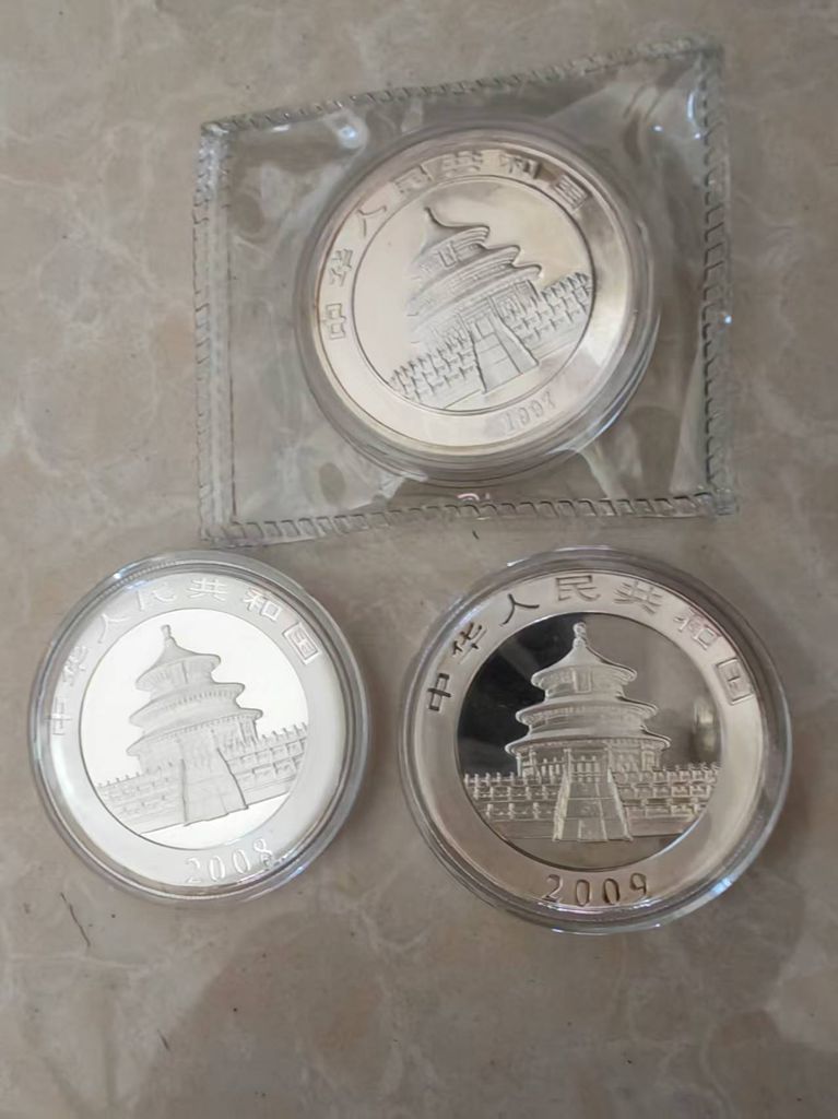 售97、08、09、10年1盎司熊猫银币各1枚