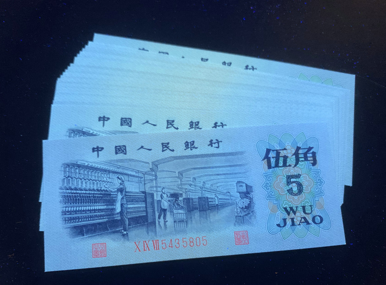 五角097长码光辉补号16连+7连共23张含一个标十。捆拆全新灯下无斑如图,通走120元一张