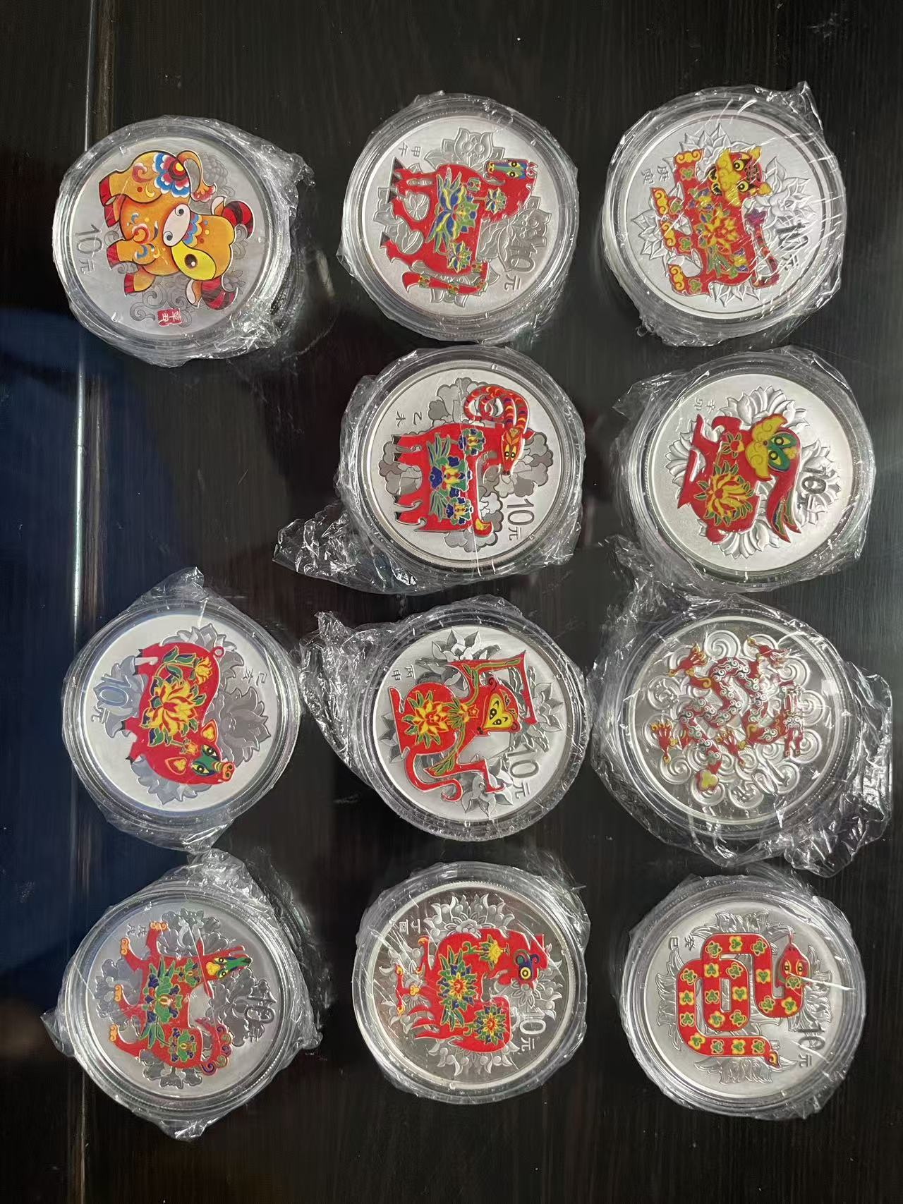 售:10年虎至21年牛二轮彩色生肖金银币11套、 金银币证盒齐全对号少1套鼠,