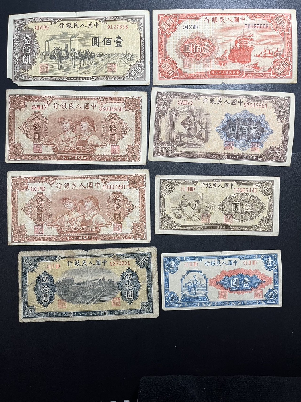 一版好品8张,板子嘎嘎硬,小工农,大工农,红轮船,驮运,铁路,织布都有,通走惠售12588元包邮,联系确认