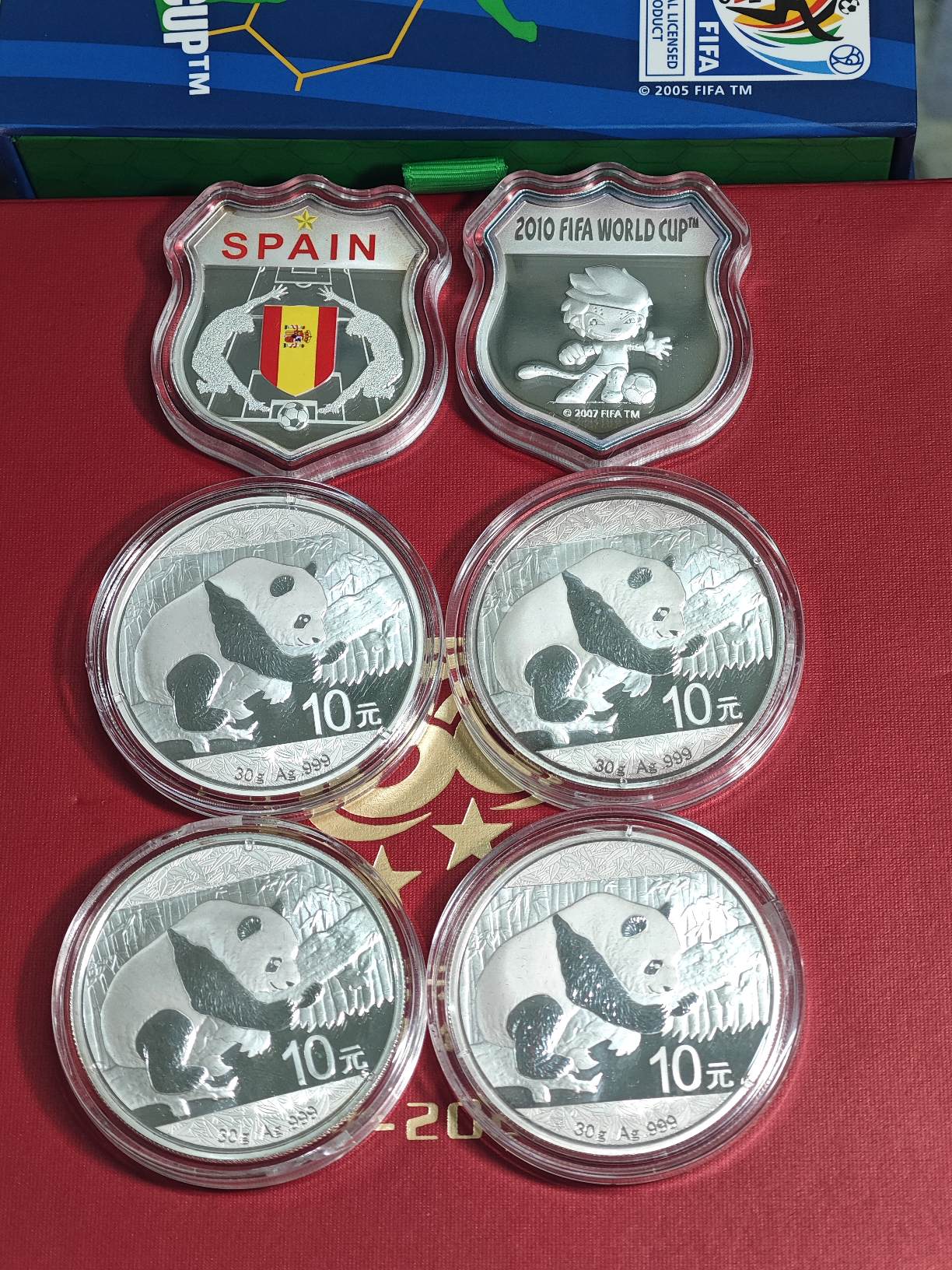 售 银条、16年银猫、足球银章,如图