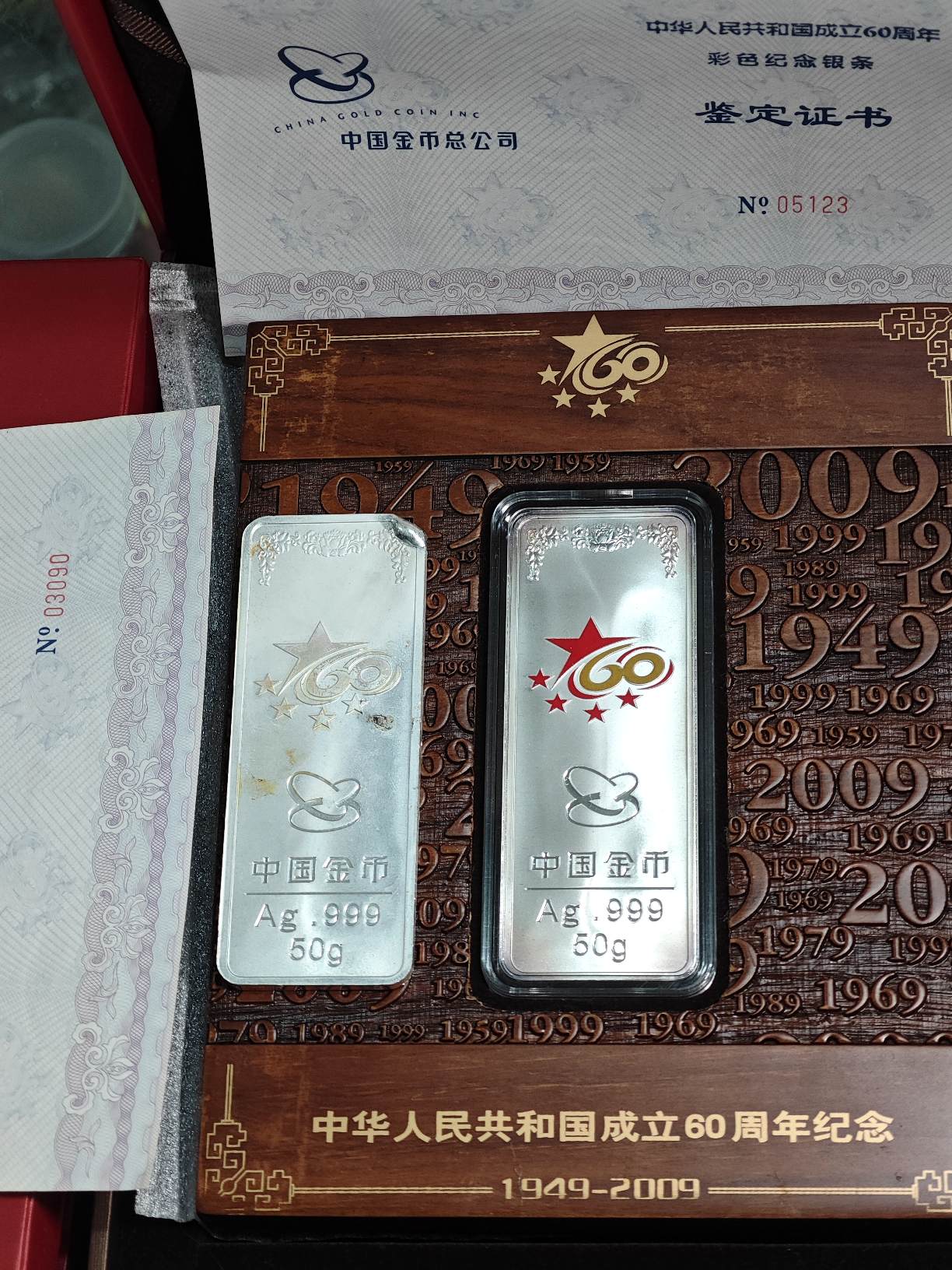 1、金总银条50克2根(验过1根),100克