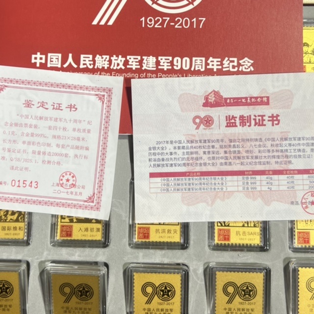 中国人民解放军建军90周年纪念金大全,含金每枚0.1克,共40枚,总计4克金售3980元,需要请联系!
