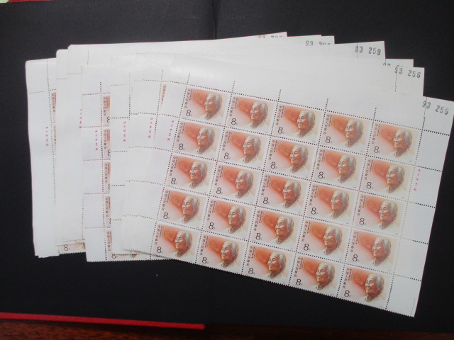 八。散票:J173文学家--1.都是上半版。少部分边纸微微黄,票好。计11个半版,每个半版12元。