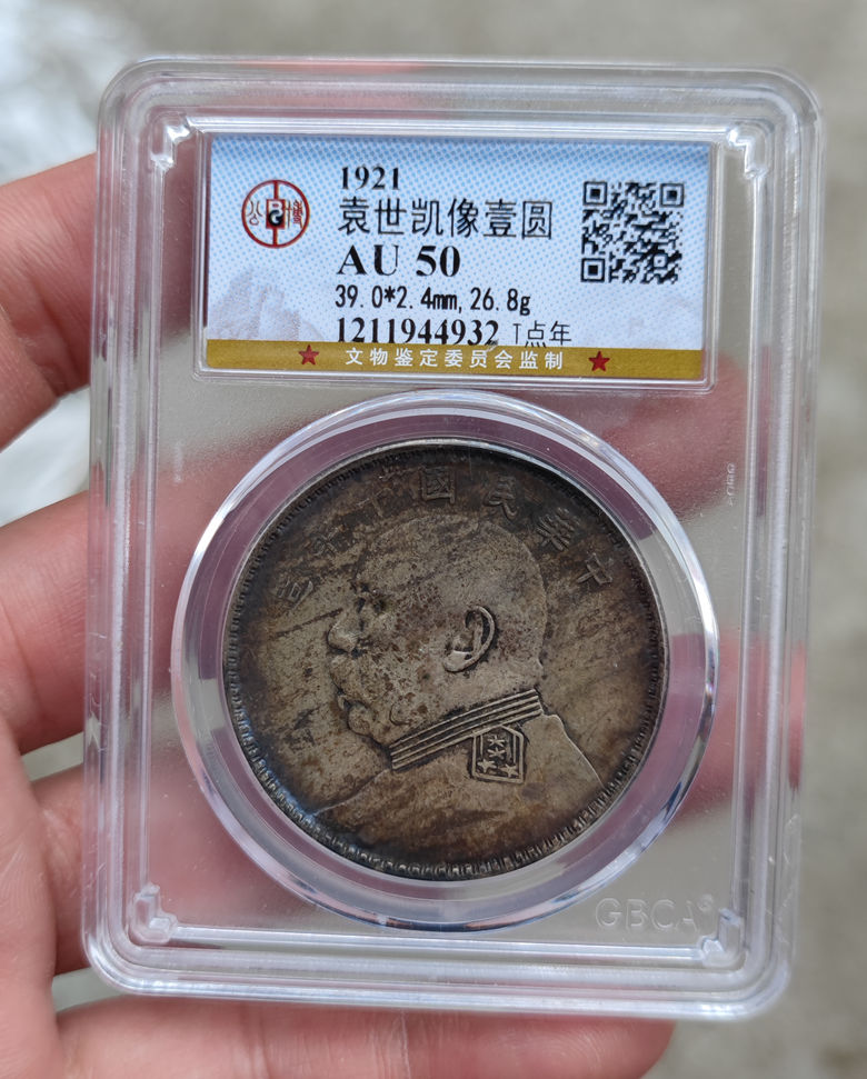 → 公博评级鉴定-AU50 酱彩民国十年大头壹圆银币