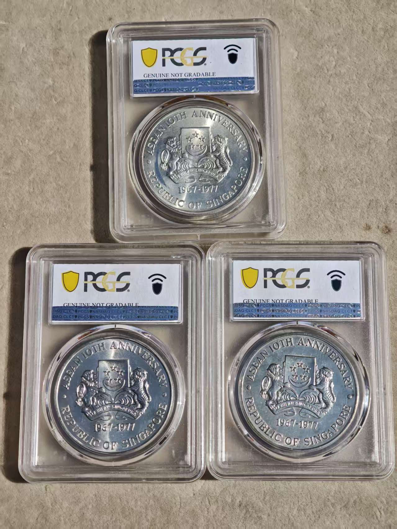 价格实惠PCGS-UNC 新加坡10元大银币3枚