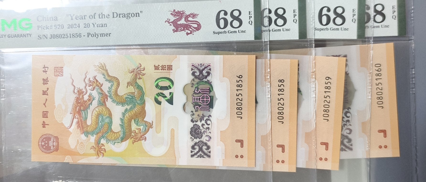 出小龙钞PMG68分四张无3.4.7钻石号四张通走:2500
