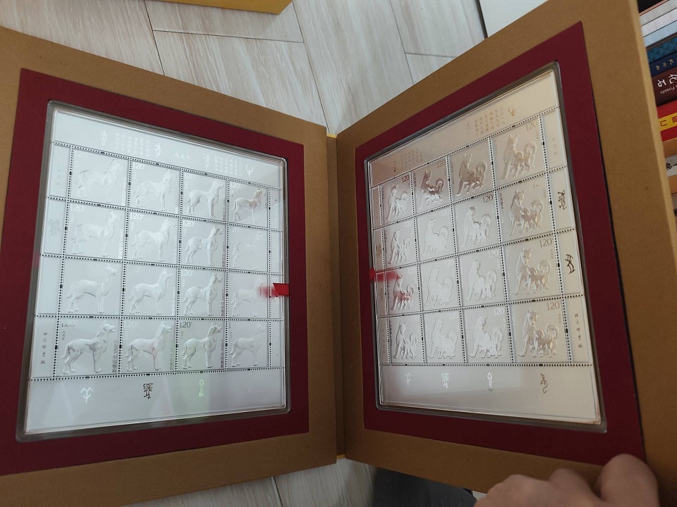 → 中国集邮总公司的金犬纳福册子出售,包括四轮狗大小版(银的50克)
