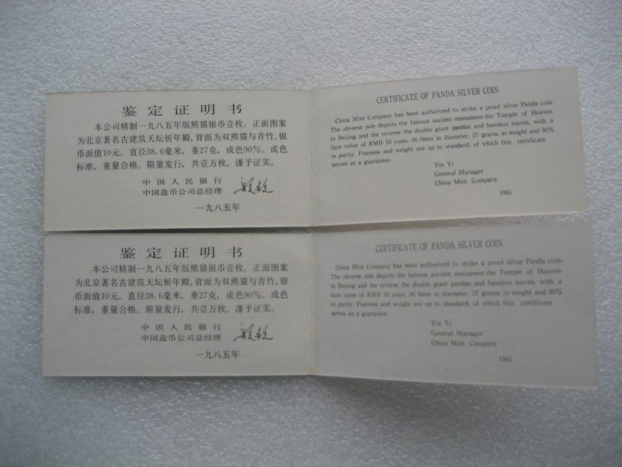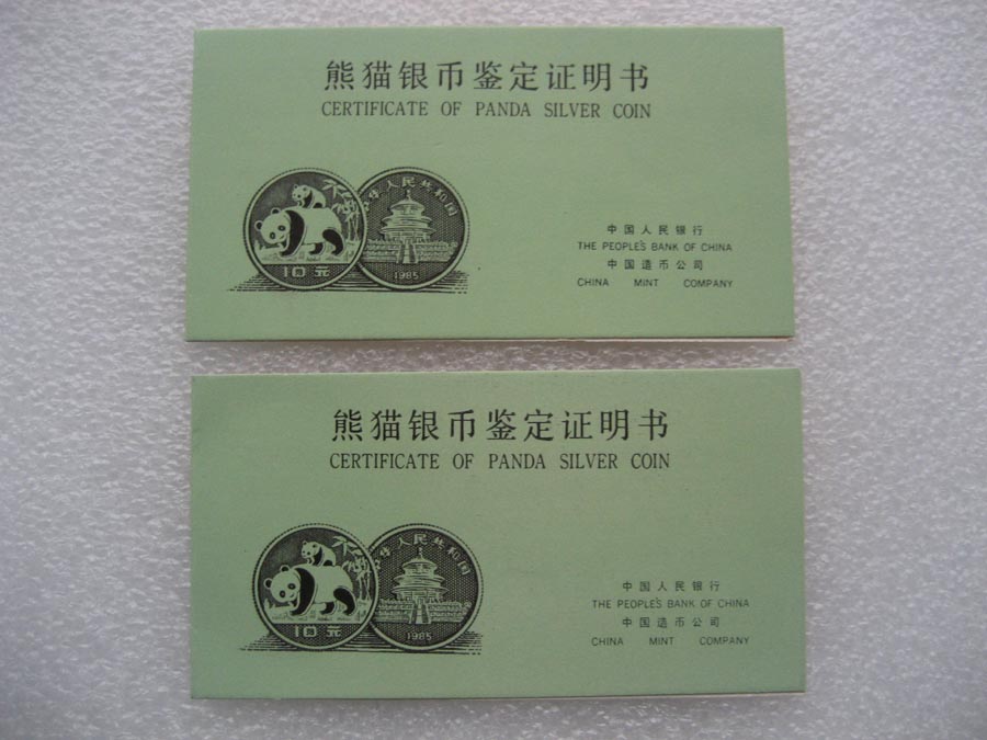 → 1985年熊猫银币 证书