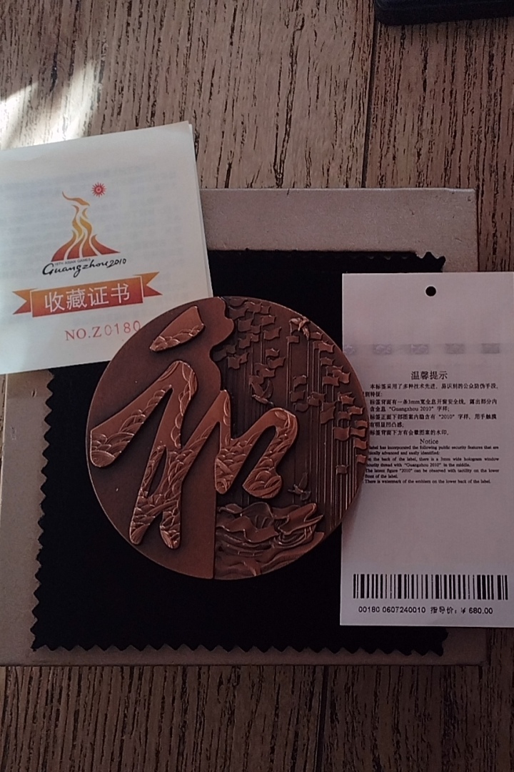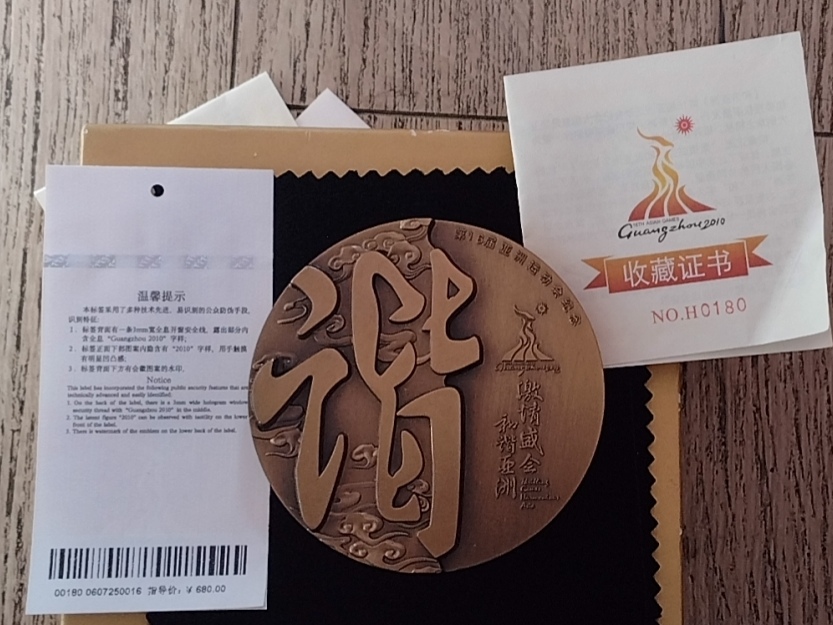 第16届亚运会和谐黄紫铜对章同号180,售价620加微信15040191908