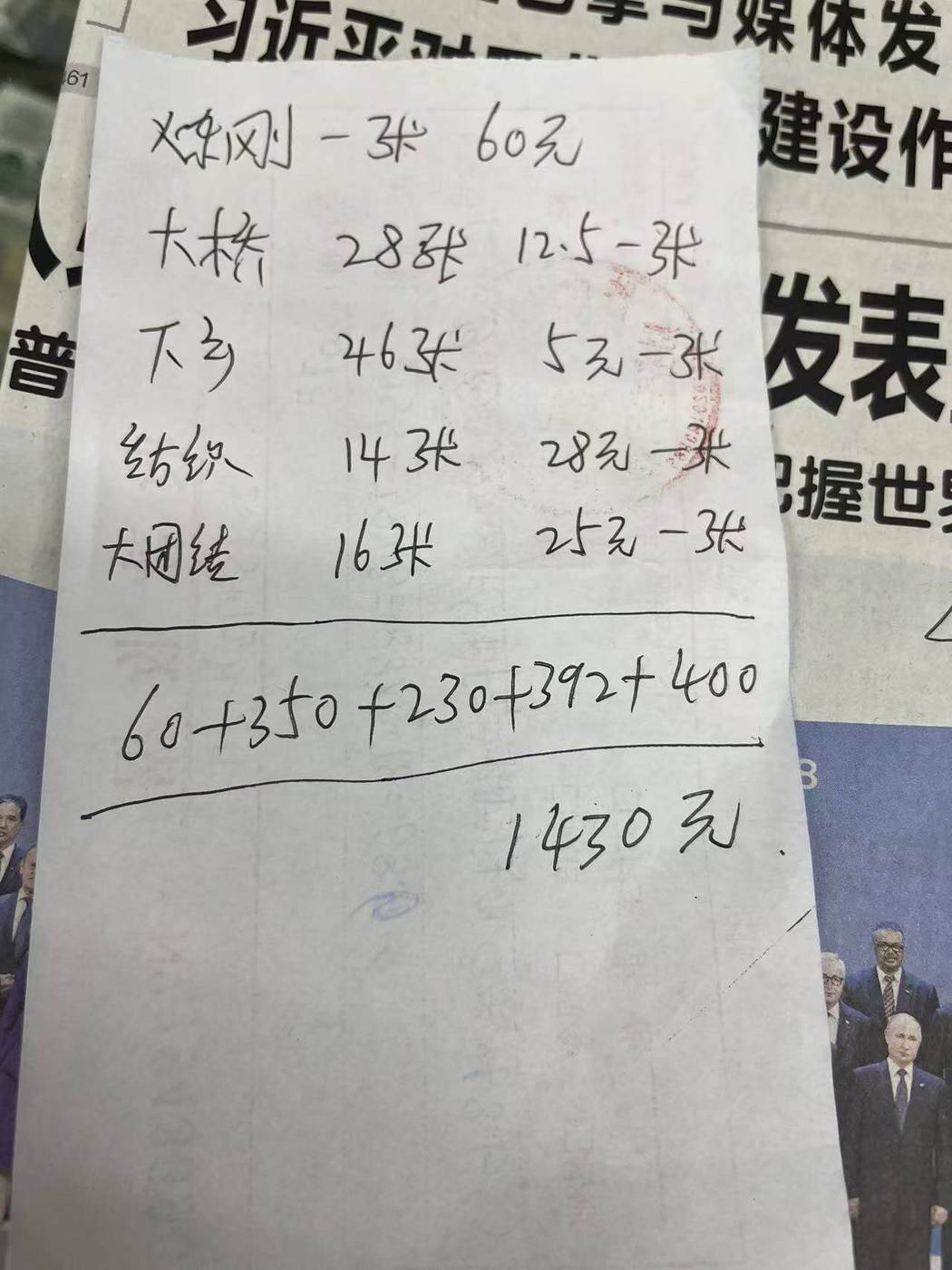 原票一起出1430元