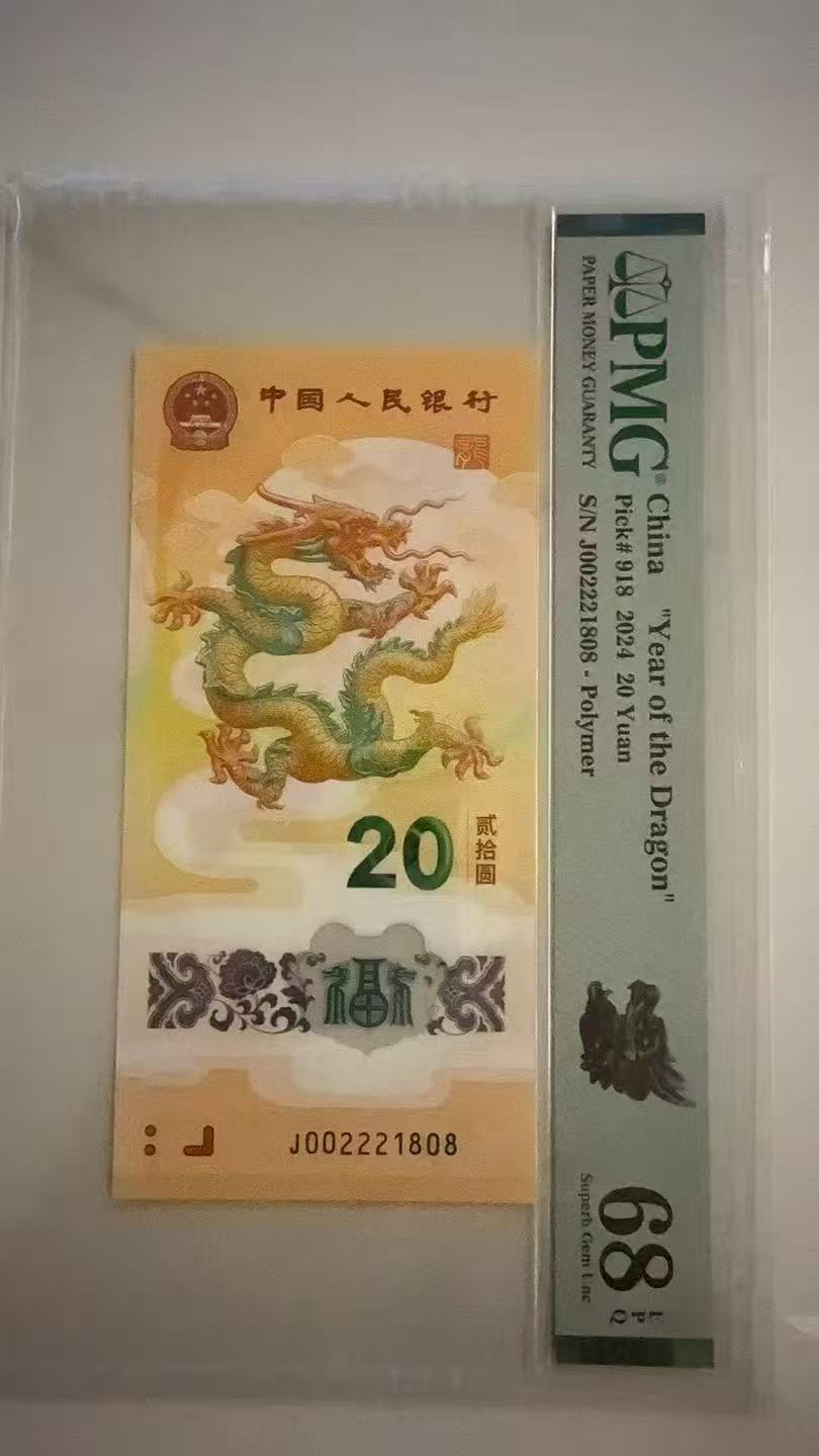 贺岁龙钞0128豹子身尾8,PMG68分,号码002221808,2488元先款包邮顺丰