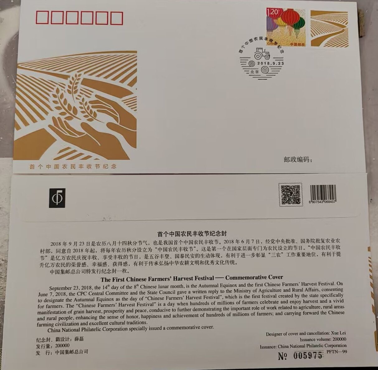 → 出售PFTN-99丰收节纪念封86个