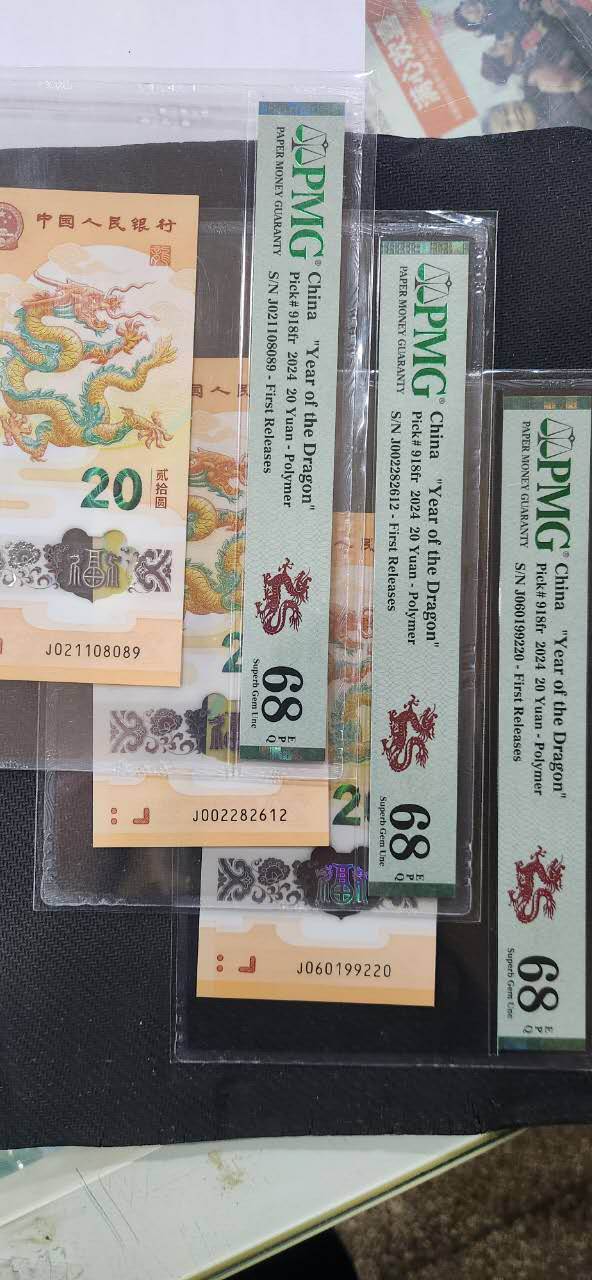 出三张小龙钞pmg68分英文首期朦胧号,号码见下图。3450元/张包顺风。