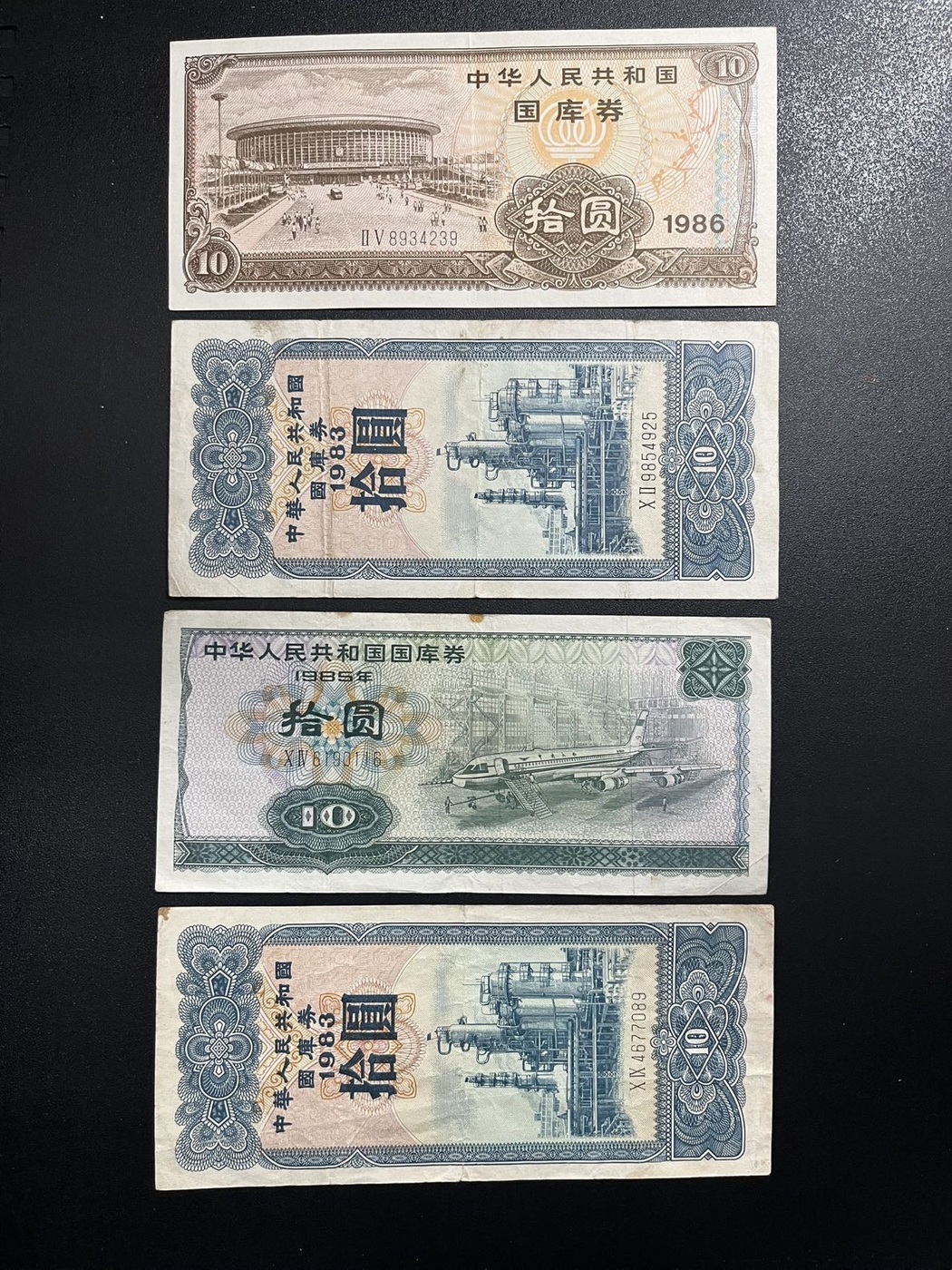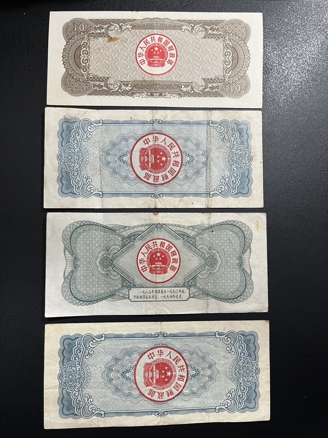 四张十元国库券,通走80包邮不议价l联系确认