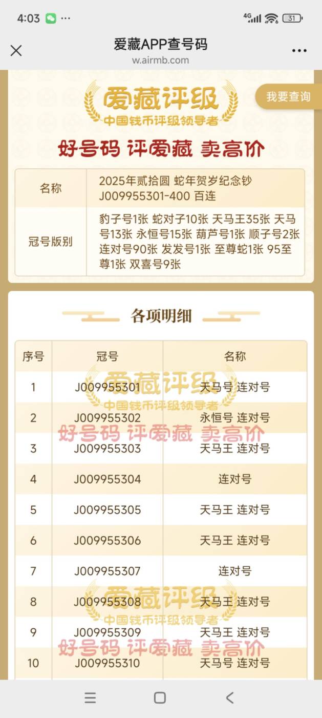 龙钞靓号天马王4对子葫芦号刀