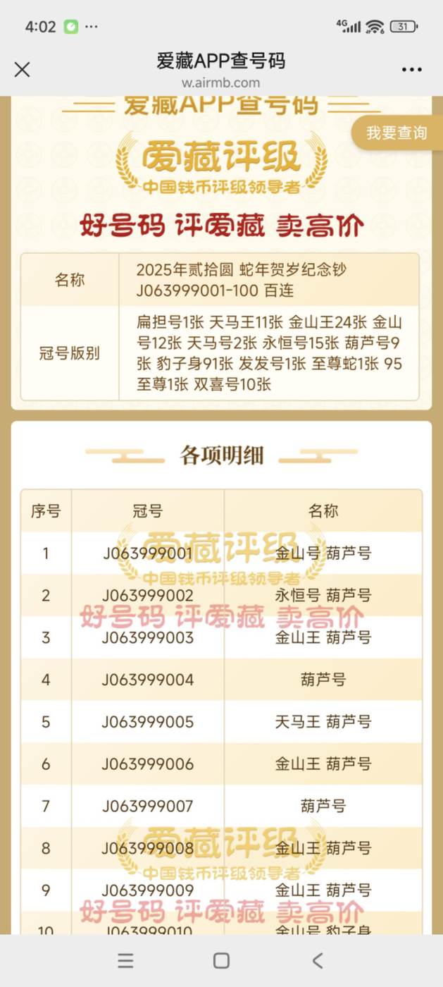 → 龙钞靓号天马王4对子葫芦号刀