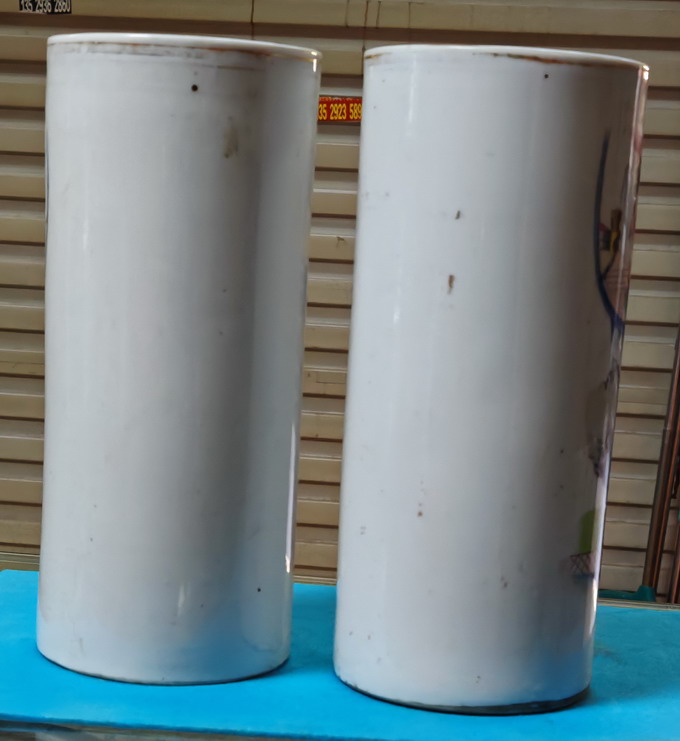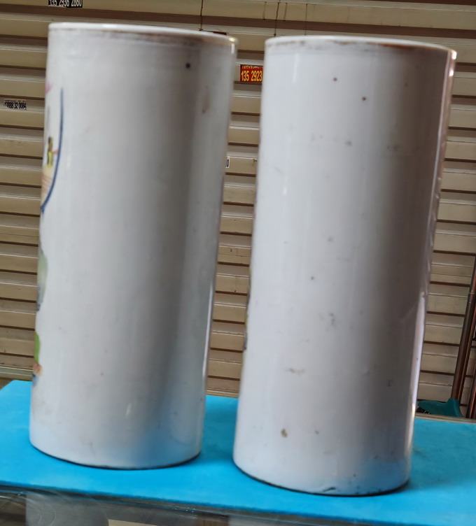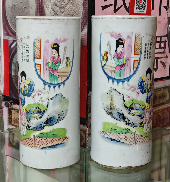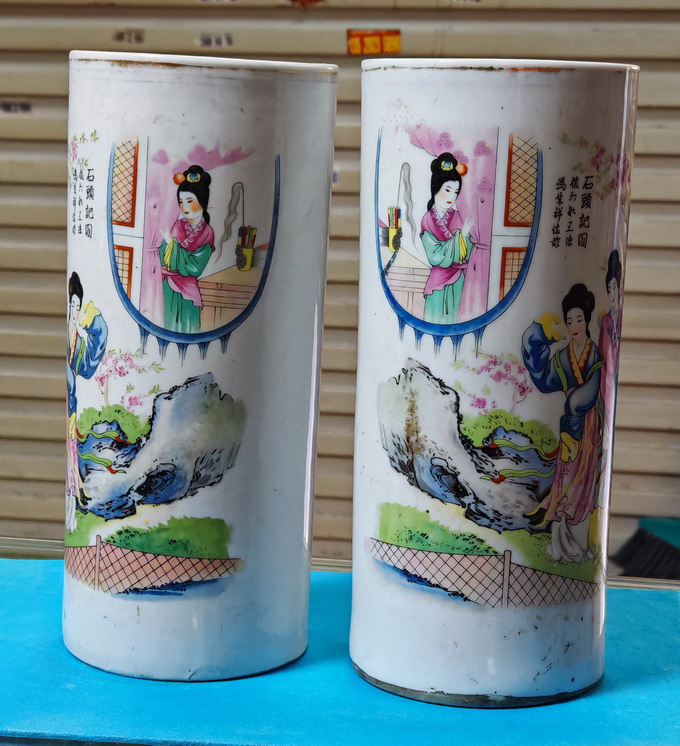 民国时期 红楼梦人物冒简一对(高28,5公分。直径12,5公分)
