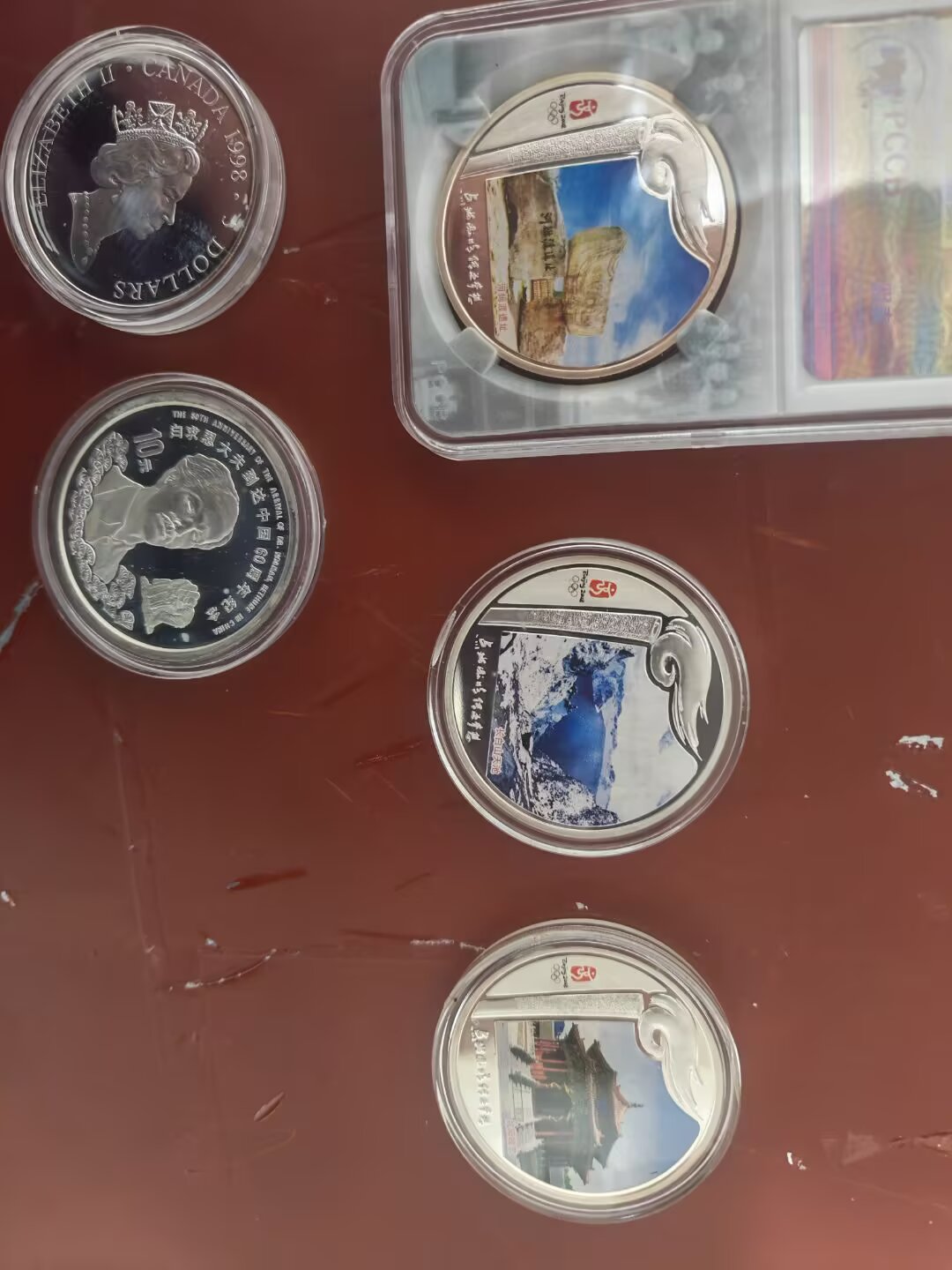 三枚奥运会火炬银币,两枚白求恩银币,一起当材料3200出了,要盒子证书加200