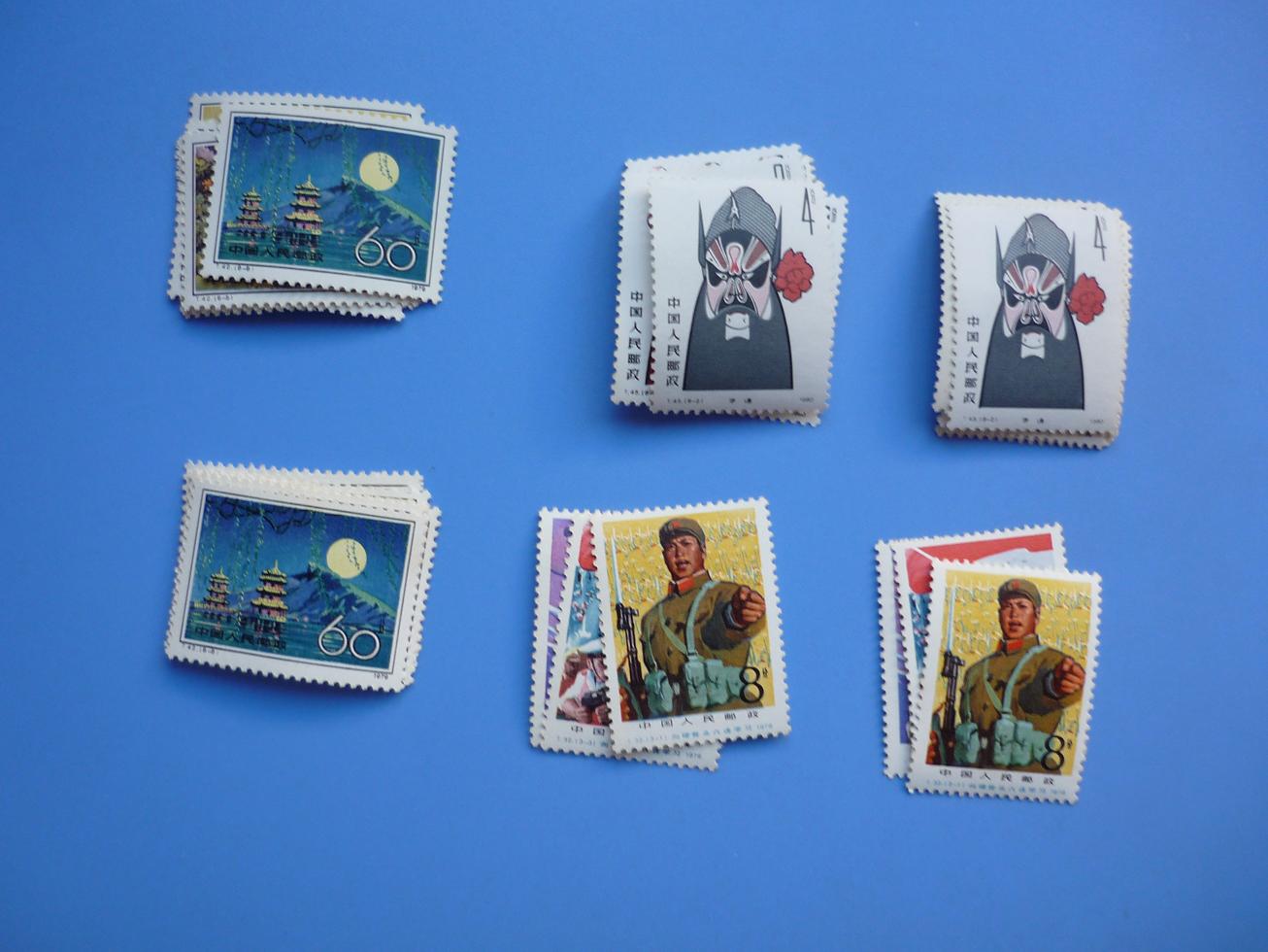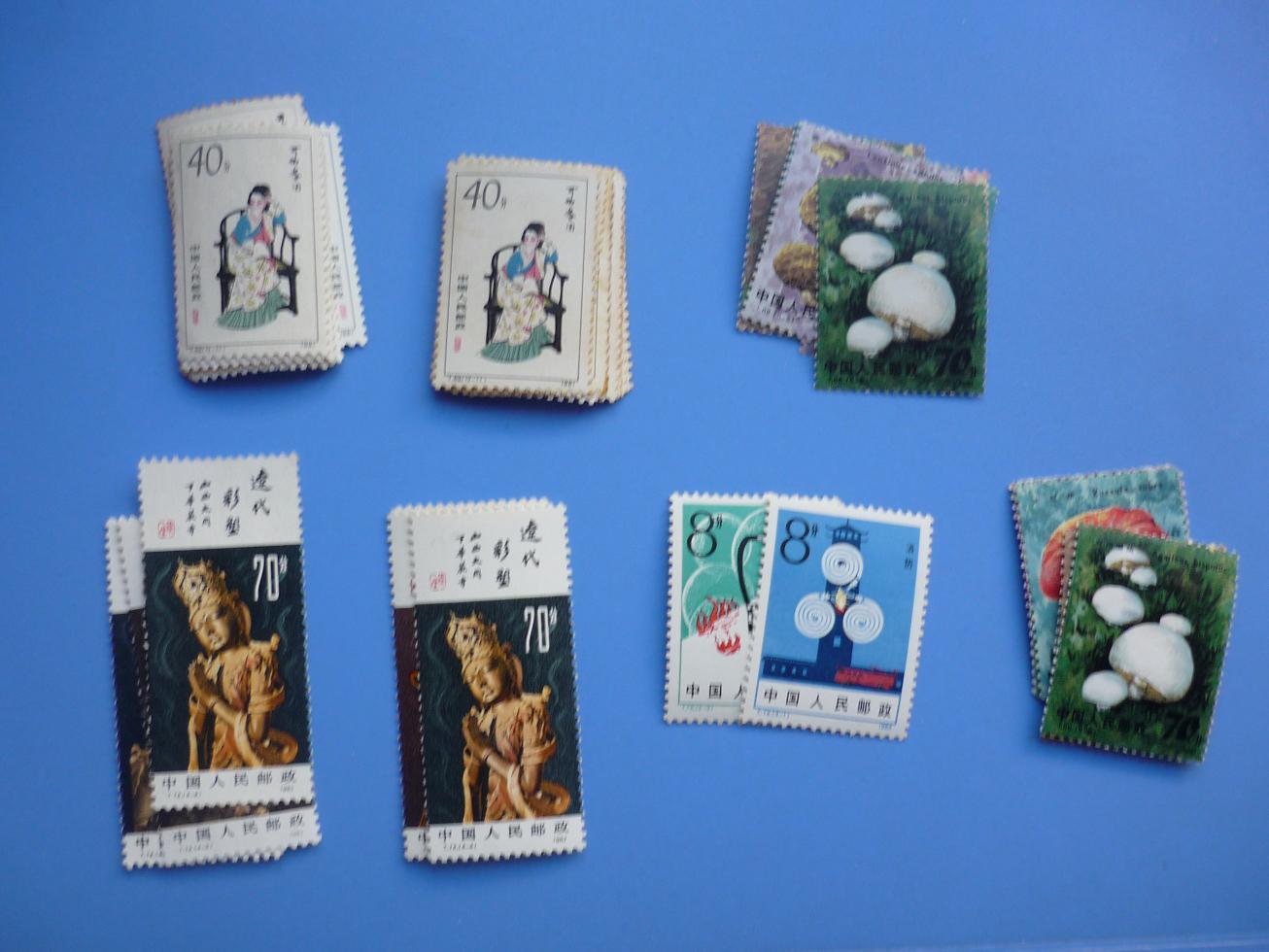 台湾46,提供两套随机发,脸谱左面一套黑四分全品无黄,其余七枚近全品174,脸谱右面一套整体近全品168,六连22,提供两套随机发,红楼两套均黄稍明显,每套139随机发,食用菌近全品38,提供两套随机发,消防4,辽彩近全品18,提供两套随机发,大庆红旗上中两套,每套89,大庆红旗下面一套近全品95,留园上面一套223,留园下面一套近全品237